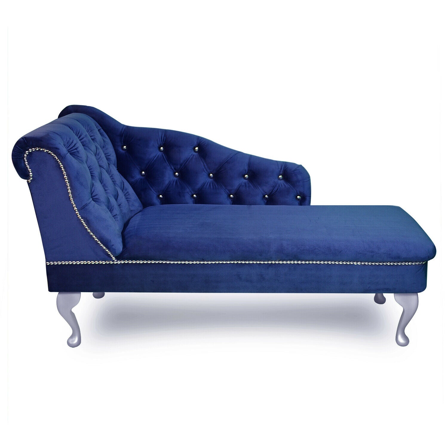 Royal Blue Velvet Chesterfield Tufted Chaise Lounge Sofa Accent Chair Bedroom
