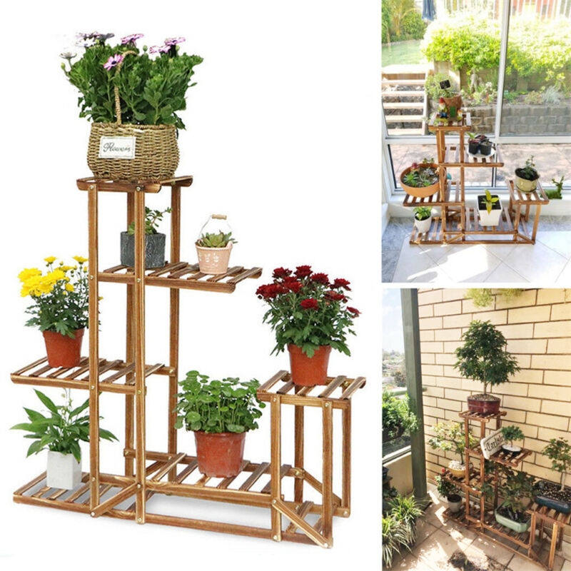 Rustic 6 Tier Wooden Step Shelf Stand Plant Flower Shelving Unit Indoor Outdoor