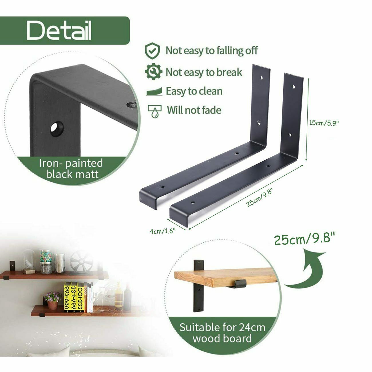 Rustic Flame Darkened Industrial Steel Metal Scaffold Board Shelf Brackets 225mm
