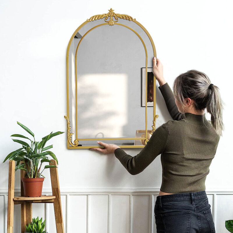 Rustic Gold Window Style Wall Mirror Home Garden Floral Decor Art Room Hallway