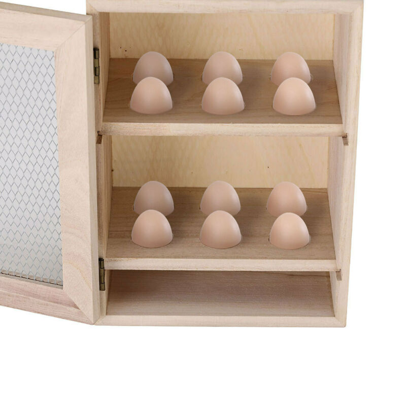 Rustic Style Egg Holder Cabinet Cupboard Wooden 2 Tier 12 Eggs Rack Storage Box