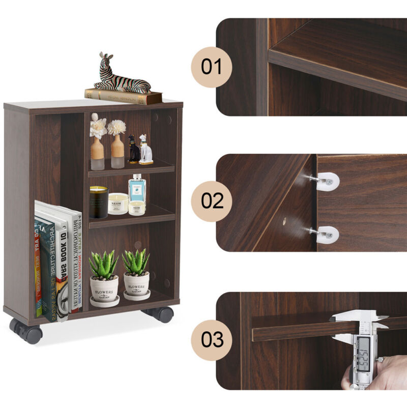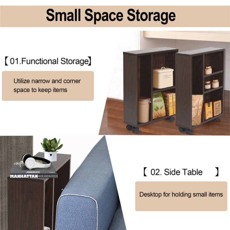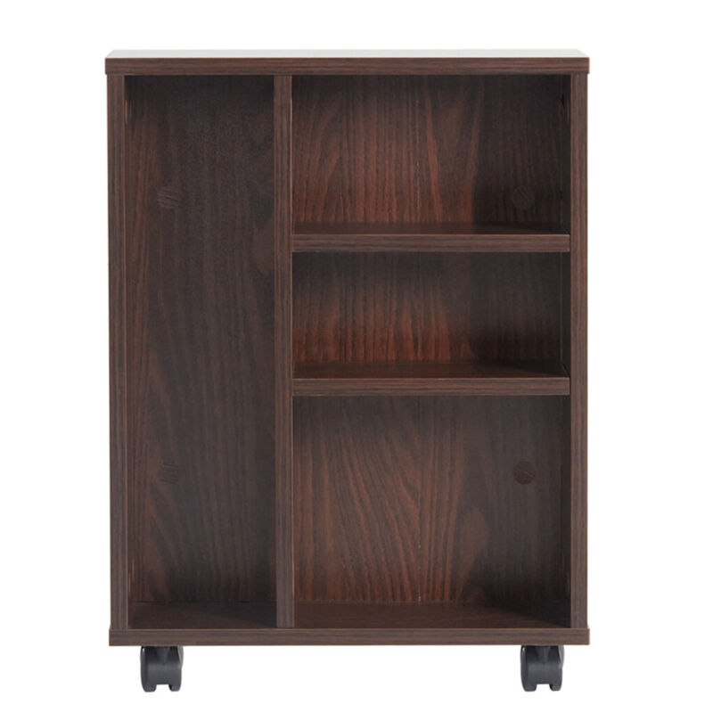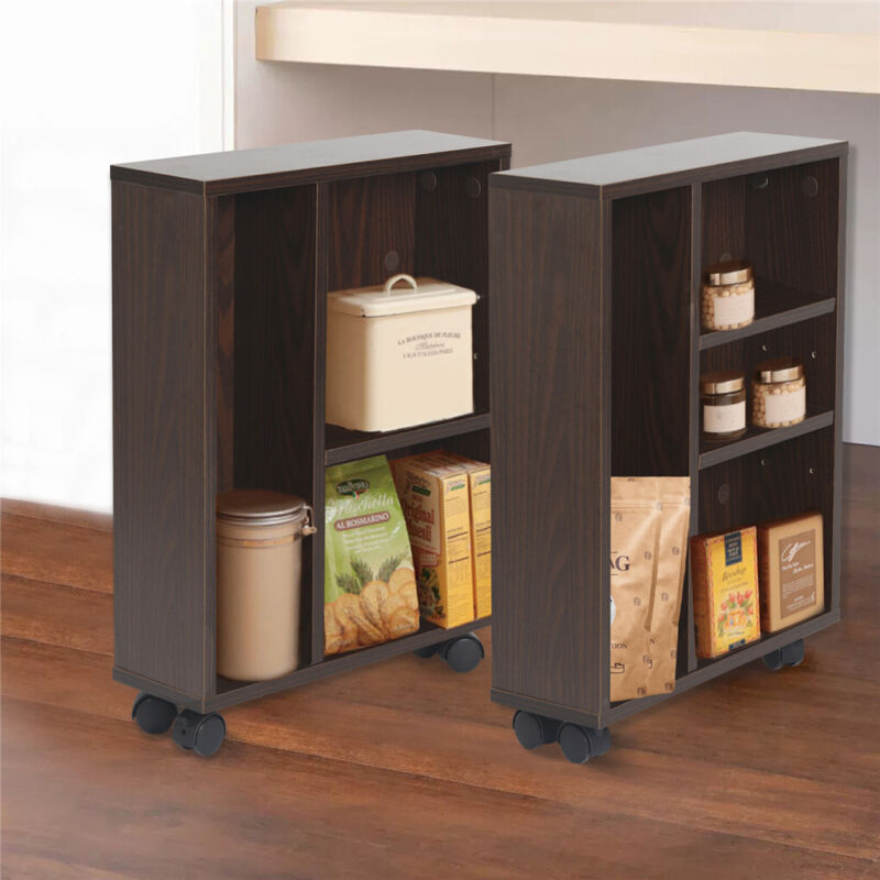 Rustic Walnut Rolling Storage Cabinet Side Table Utility Trolley Closet Kitchen