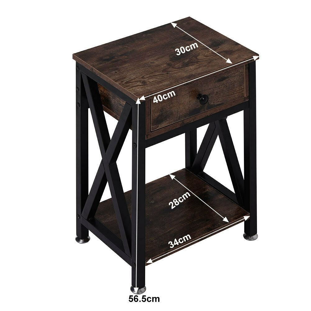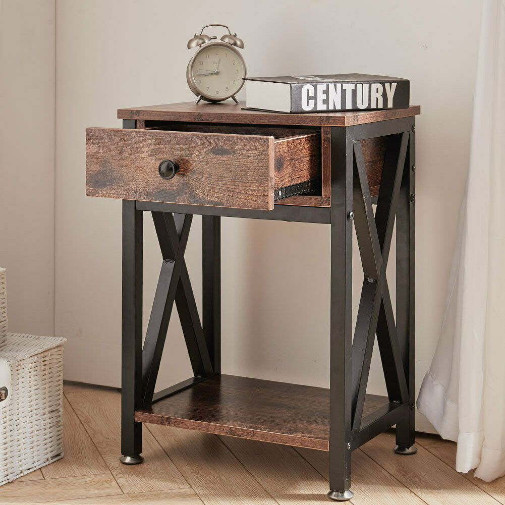 Rustic Wood Bedside Table 1 Drawer Cabinet Bedroom Nightstand Home Furniture