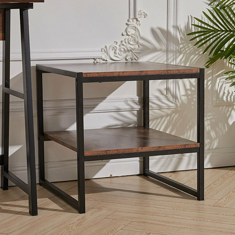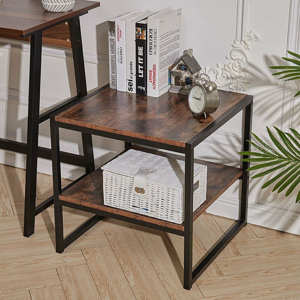 Rustic Wood Coffee Table 2 Tier Side End Table Lamp Stand Bedside Nightstand