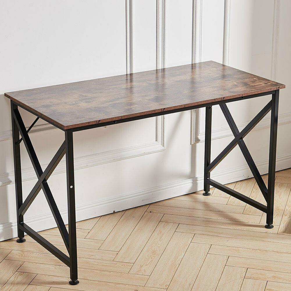 Rustic Wooden 54/80/120cm Computer Desk Writing Study PC Table Workstation Shelf