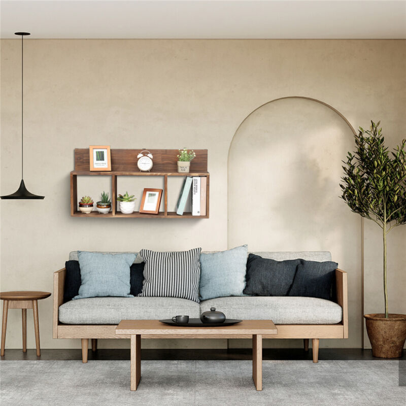 Rustic Wooden Cube Floating Shelves Open Square Bookcase Wall Shelf Organizer