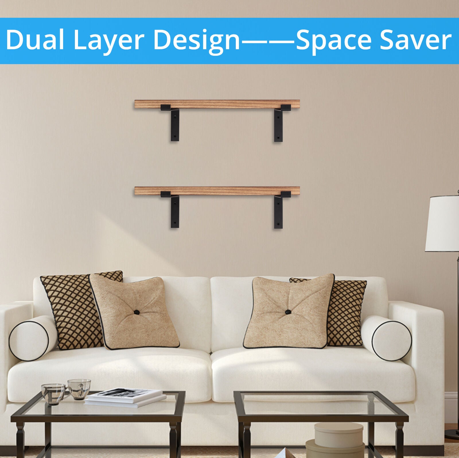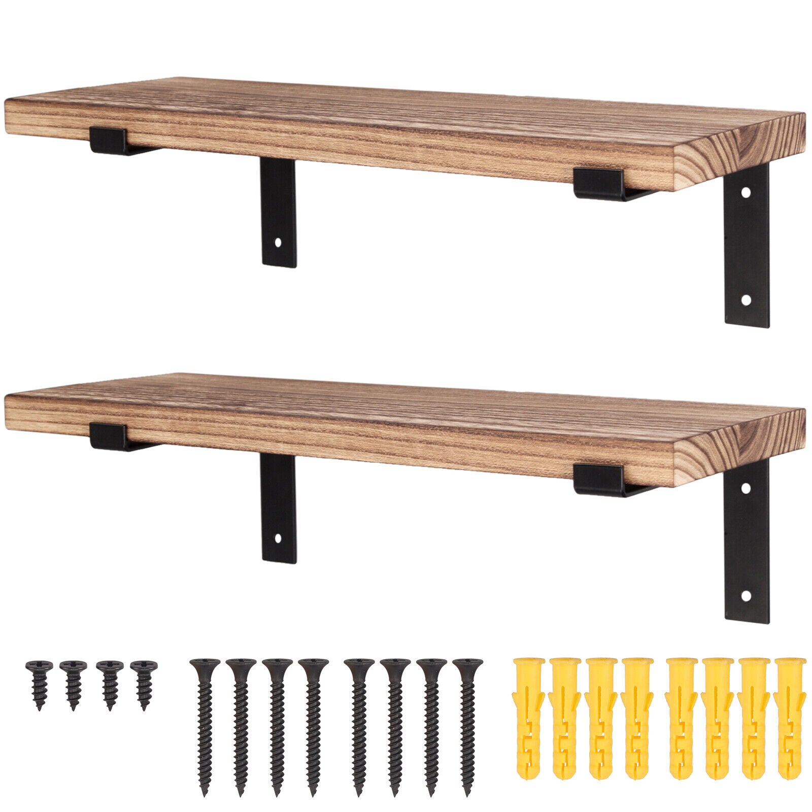 Rustic Wooden Shelf Metal Wall Floating Shelves Brackets Scaffold Board Storage