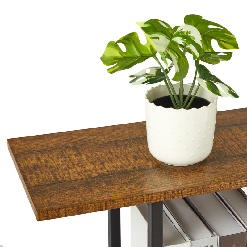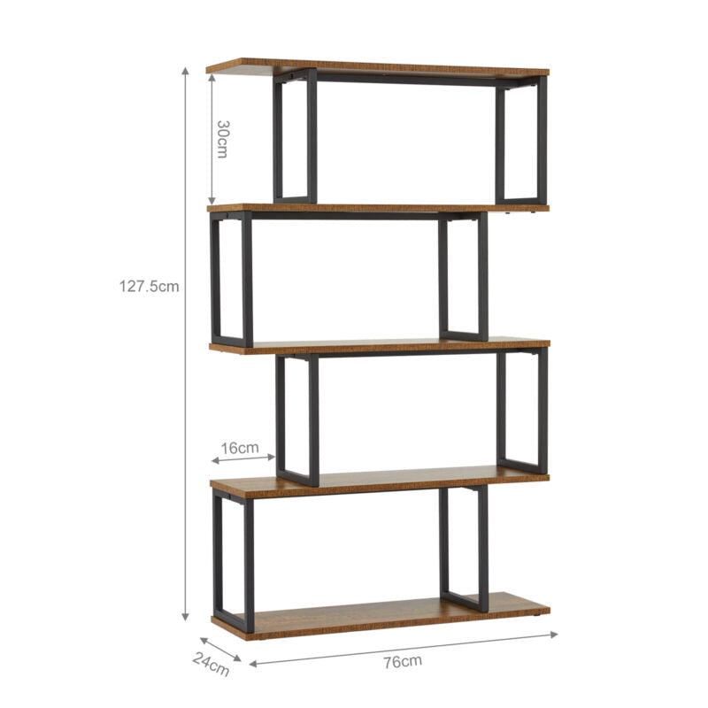 S Shape Lounge Storage Display Unit Bookcase Bookshelf 4 Tier Rack Metal Frame