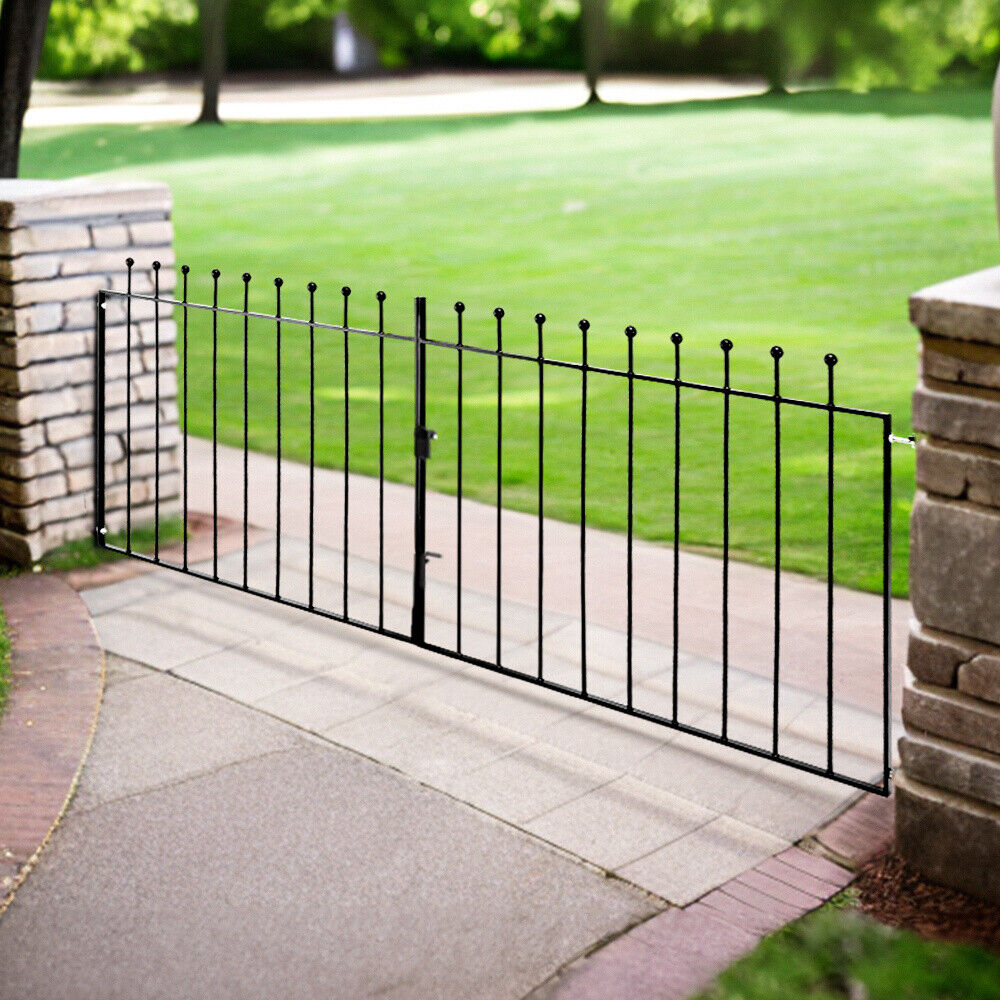 Safety Wrought Iron Metal Garden Double Driveway Gate Easy Install 7FT 8FT 10FT