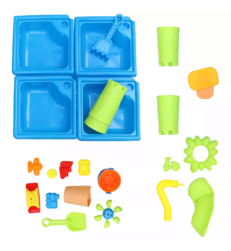 SAND & WATER 4 SECTION TABLE BUCKET SPADE KIDS OUTDOOR GARDEN SANDPIT SET UK