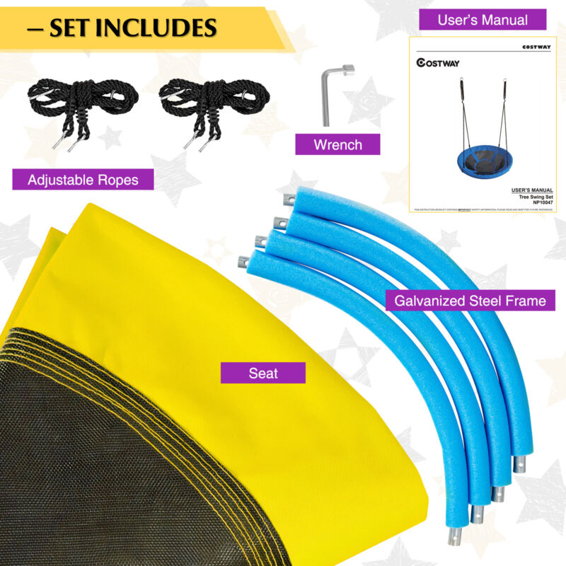 Saucer Tree Swing 100cm Round Disc Nest Swing Seat with Heights Adjustable Rope