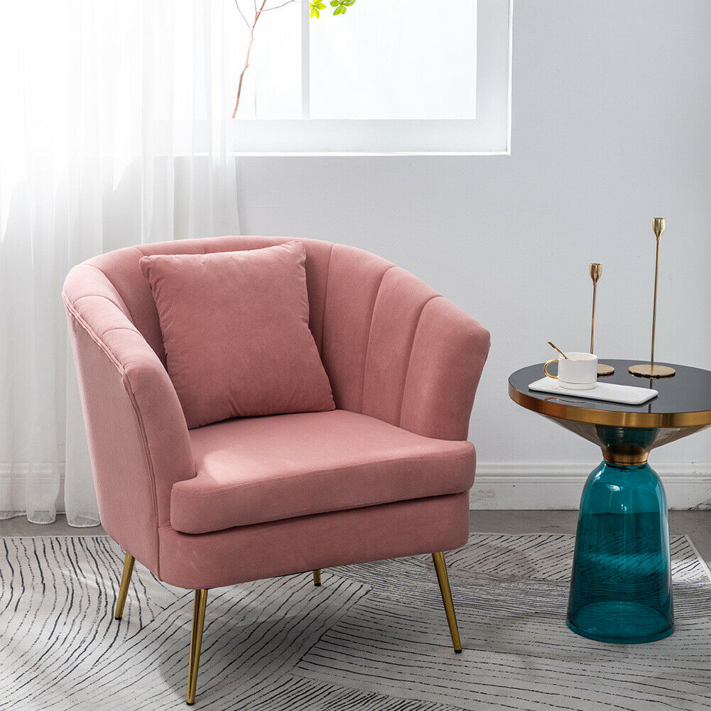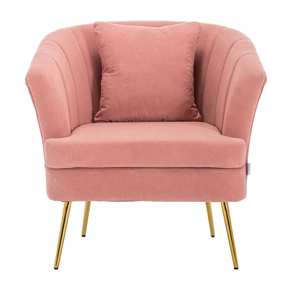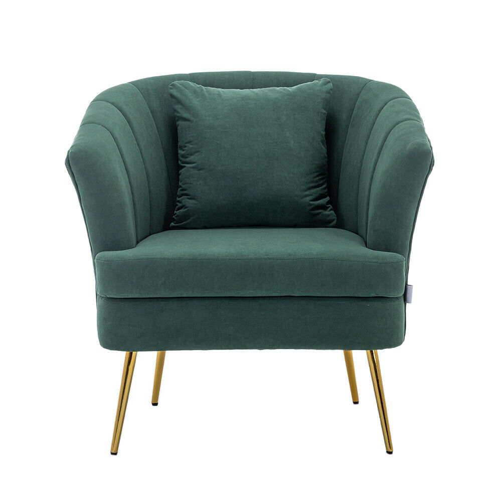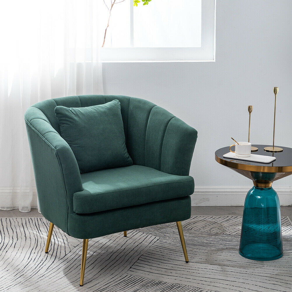 Scallop Back Velvet Armchair Occasional Accent Chair Tub Seat Gold Metal Frame