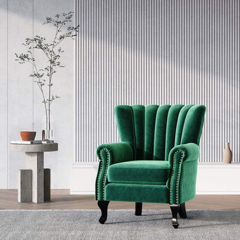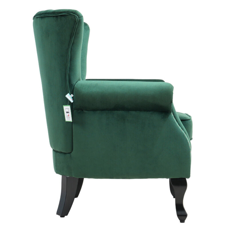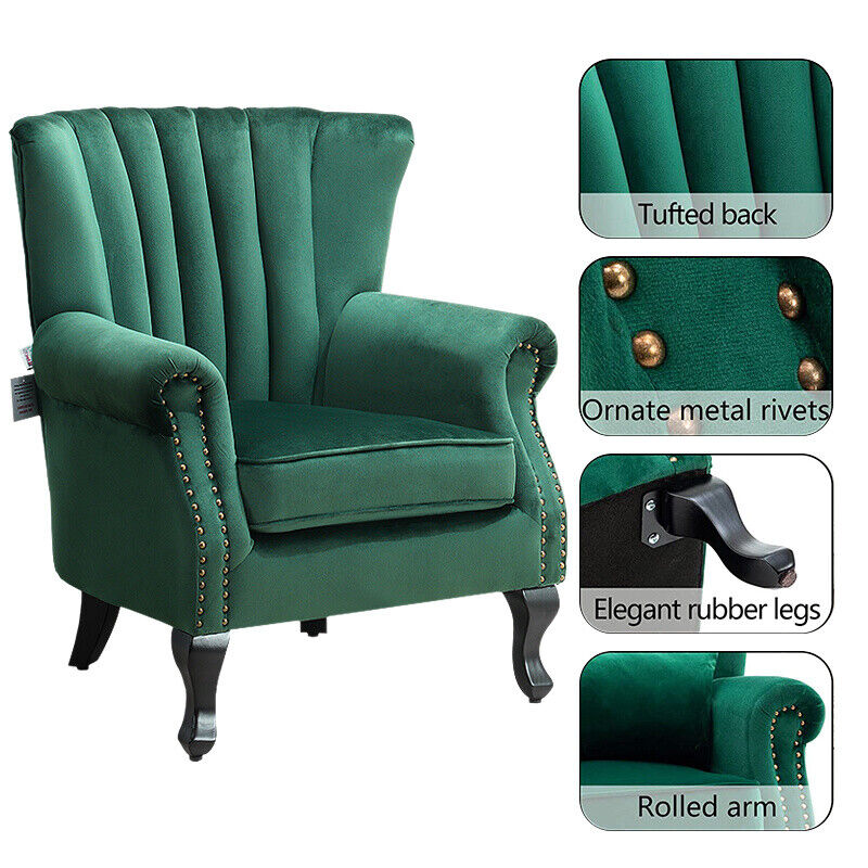 Scalloped Back Velvet Armchair Wing Back Chesterfield Queen Anne Chair Club Sofa