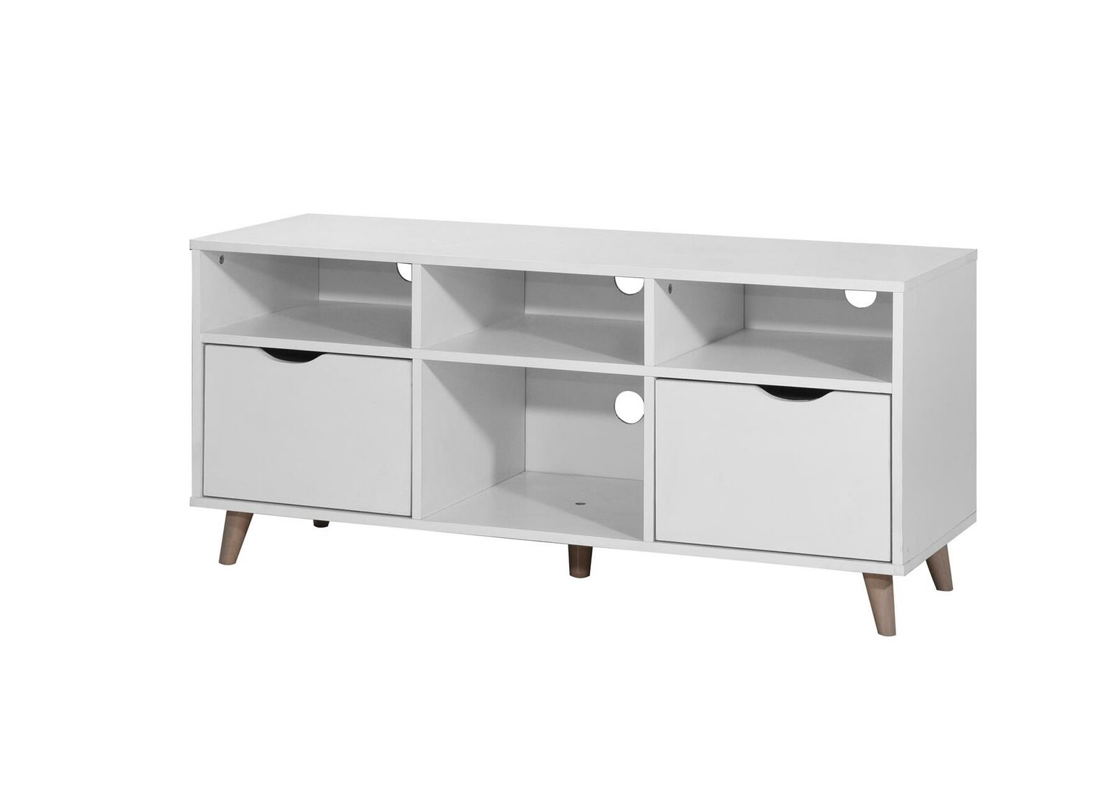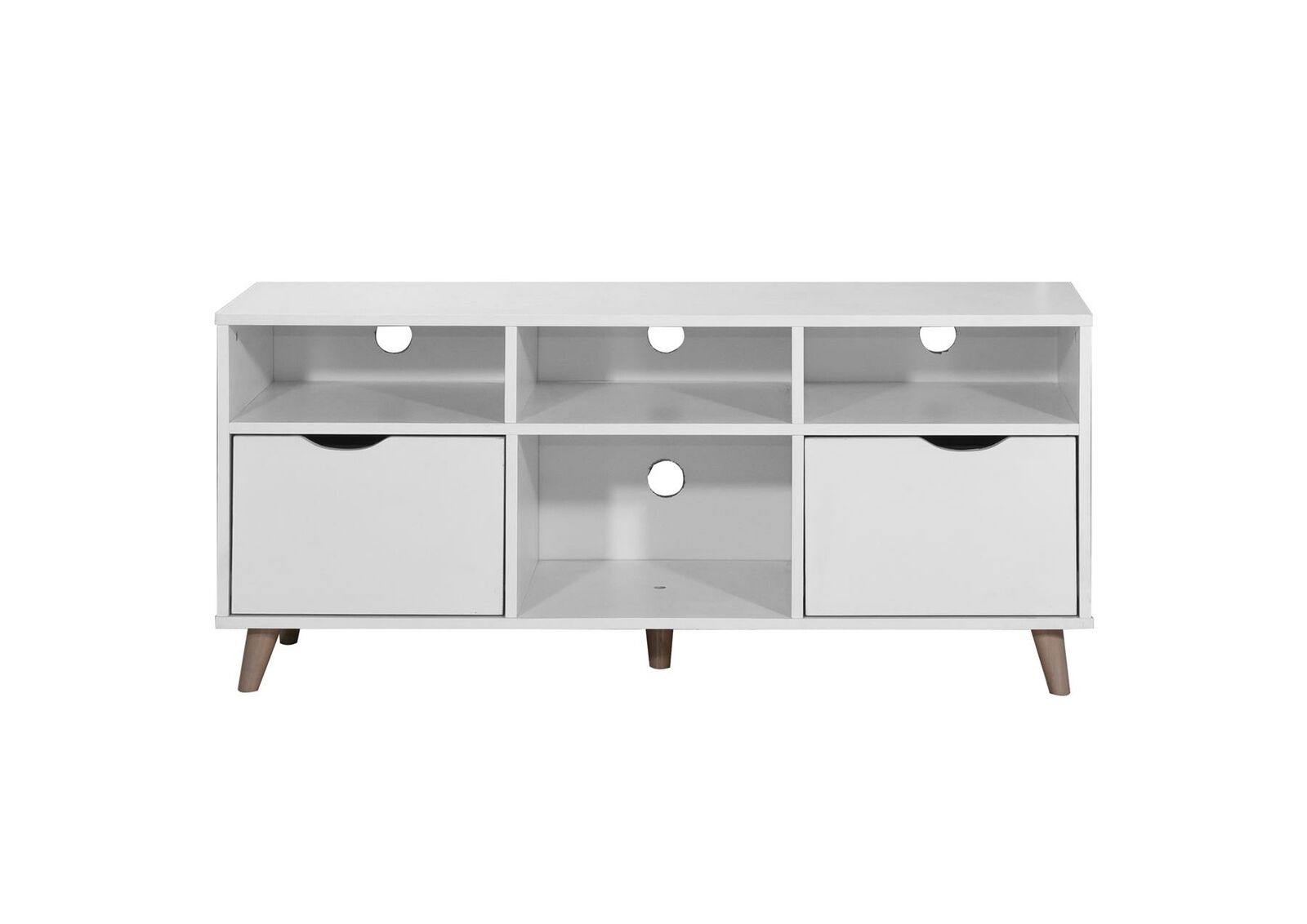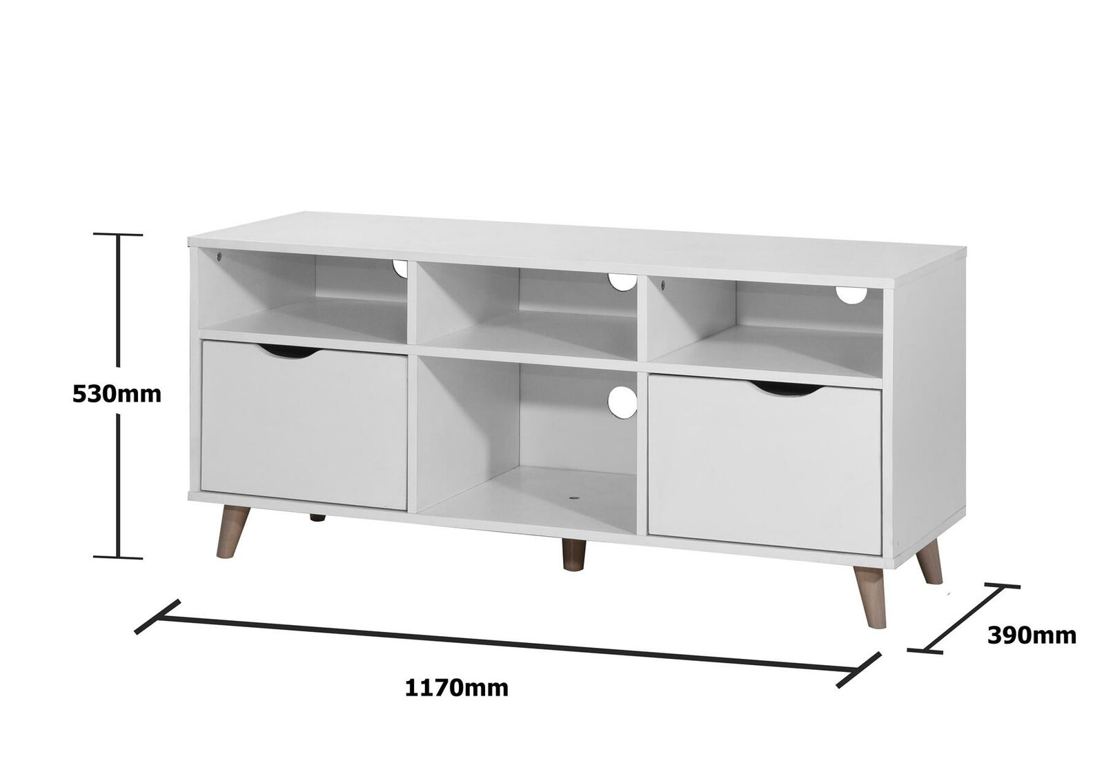 Scandi Nordic TV Unit Stand Cabinet 2 Drawer + Shelf White 117cm Media Cabinet
