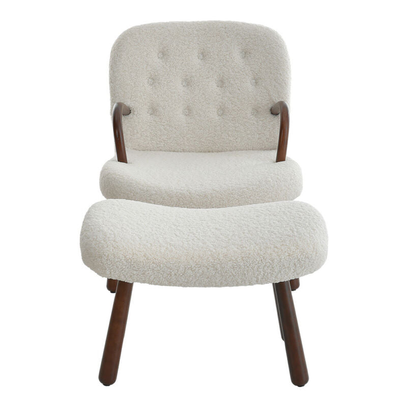 Scandi Wood Frame Teddy Velvet Armchair Leisure Sofa With Footstool Club Chair