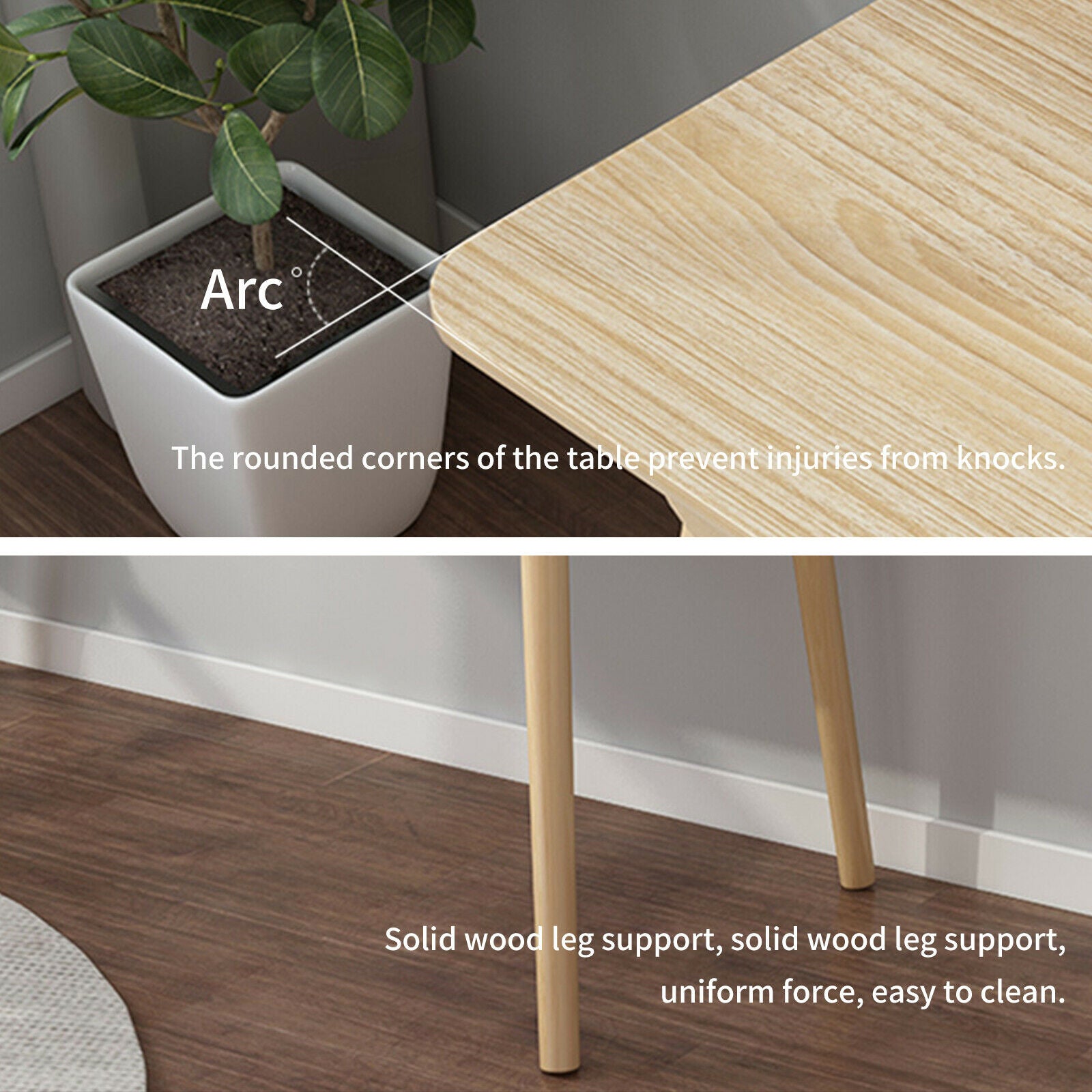 - Material: MDF board + solid wood legs