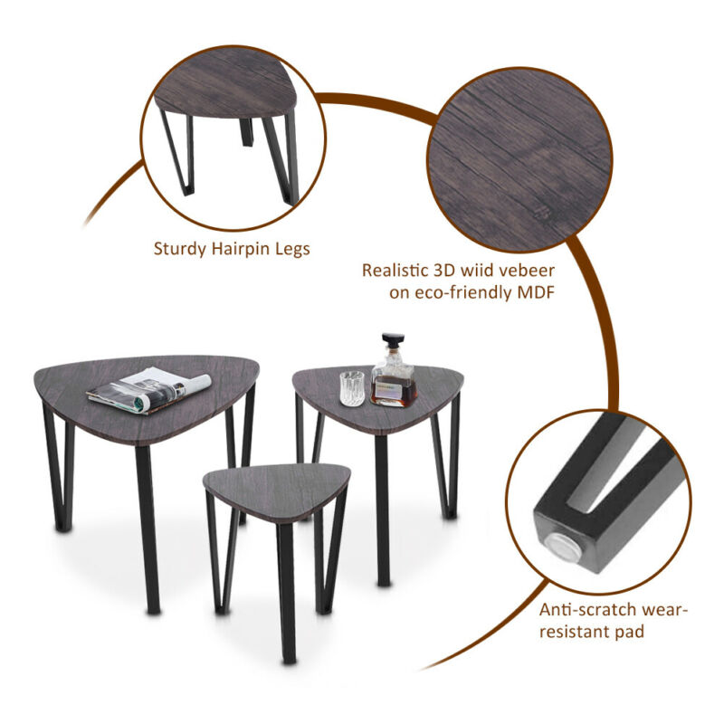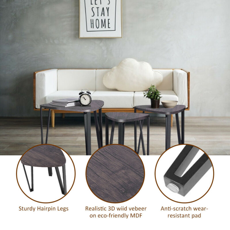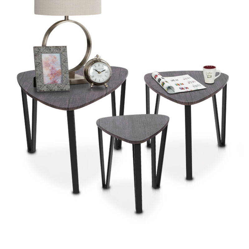 Scandinavian Nest of 3 Tables Tea Coffee Lamp Table Side End Table Metal Legs