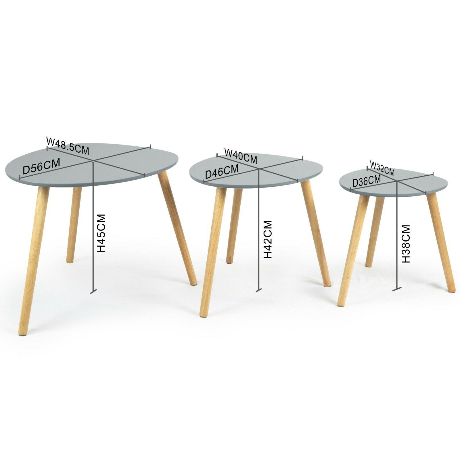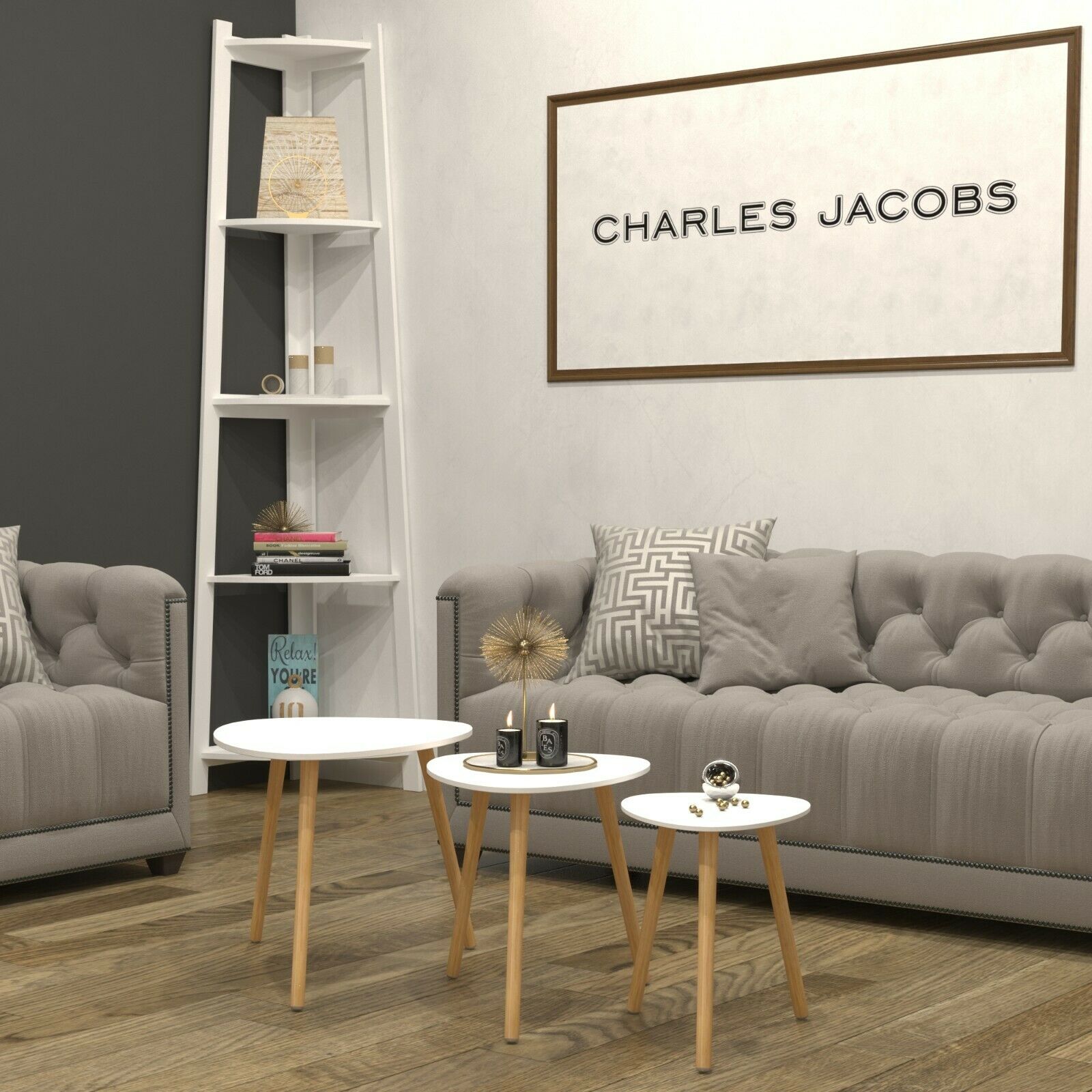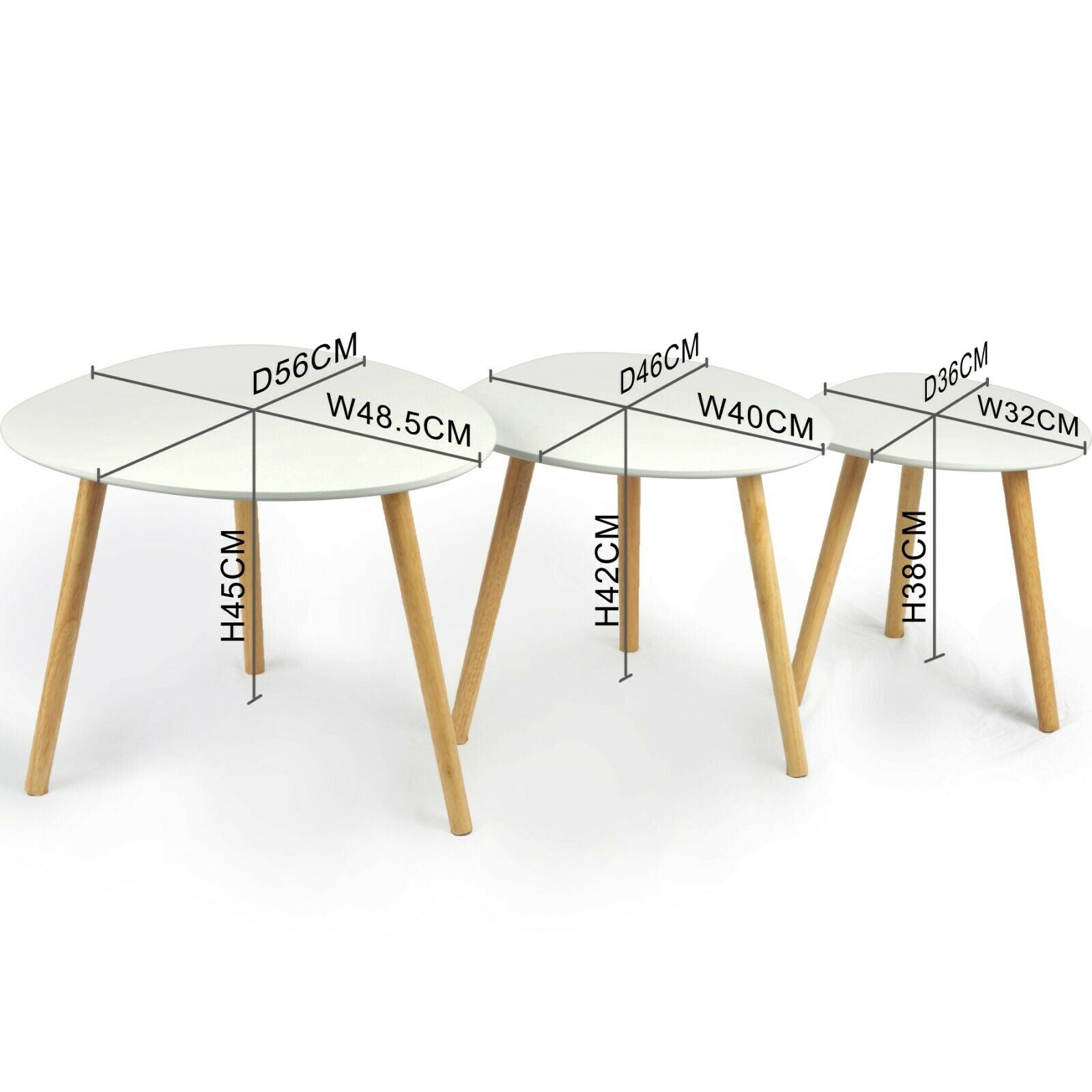 Scandinavian Nest of Tables Coffee Side End Lamp Set of 3 Modern Furniture