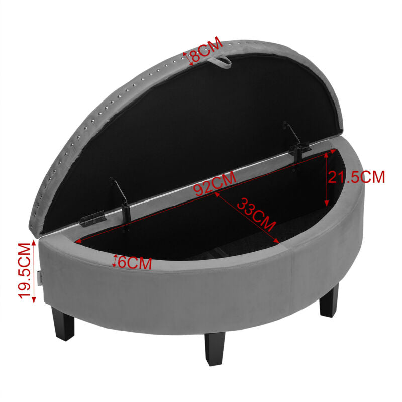 Semi Round Ottoman Storage Stool Bench Bed End Chair Footstool Blanket Chest Box