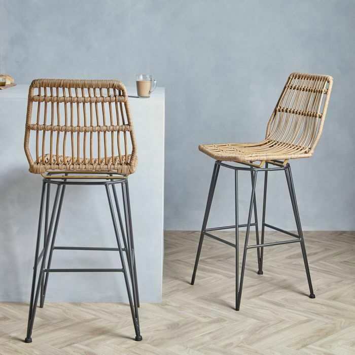 Set 2 Rattan Bar Stools Bistro Furniture Entryway Dining Room Living Breakfast