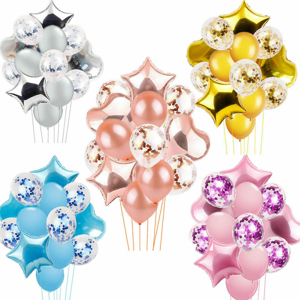 Set Confetti Wedding Birthday Balloons Heart Latex Foil Kids Boy Girl Baby Party
