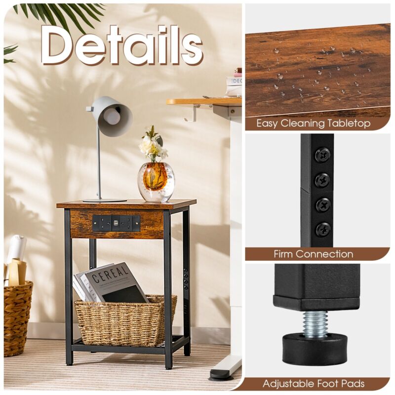 Set of 2 2-Tier Nightstand BedSide Sofa Table Storage Unit w/Charging Station