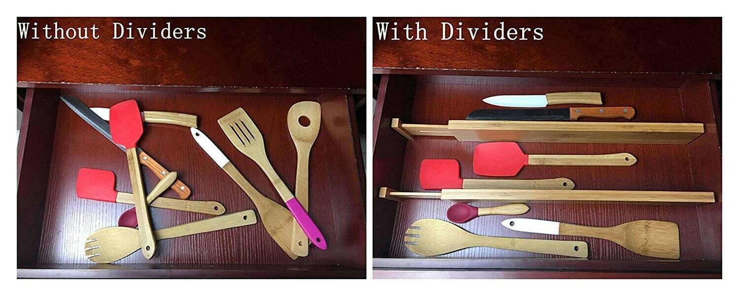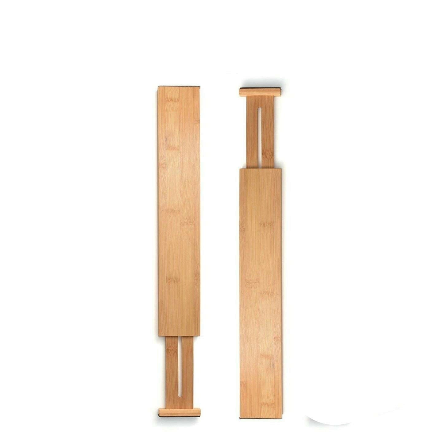 Set of 2 Bamboo Wooden Drawer Dividers Separators Organizers Expandable Dividers
