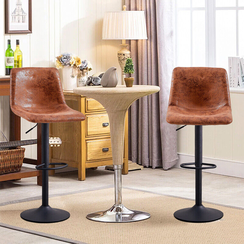 Set of 2 Bar Stools Adjustable Height Swivel PU Leather Bar Chairs Brown Modern
