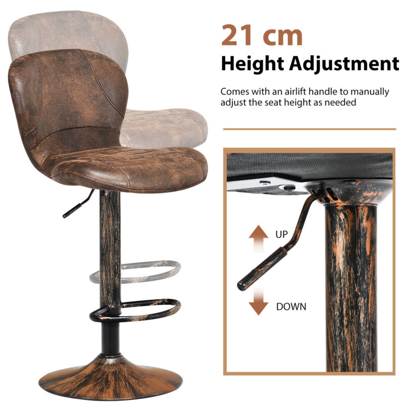 Set of 2 Bar Stools Adjustable Swivel Leather Pub Chair Kitchen Dining Chairs
