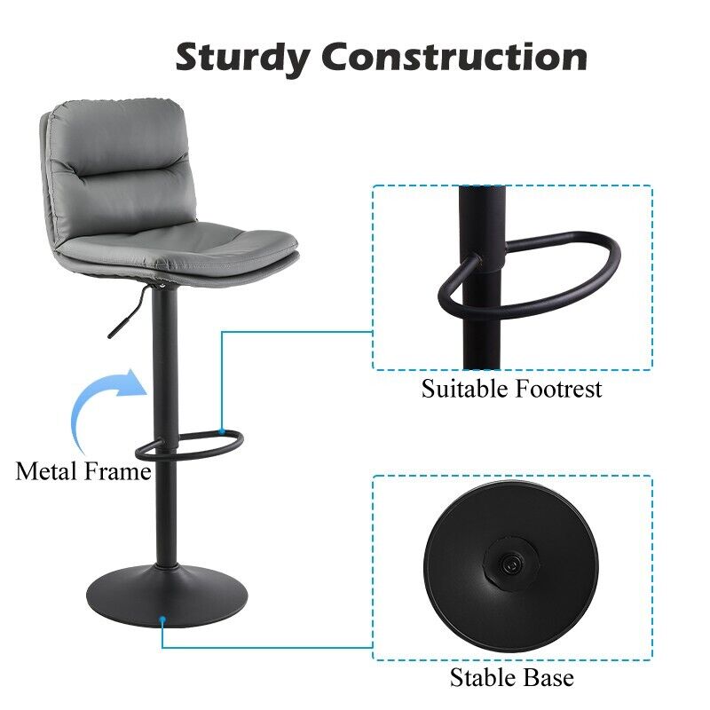 Set of 2 Bar Stools Breakfast Stools With Foot Rest Swivel Gas Lift Modern Grey