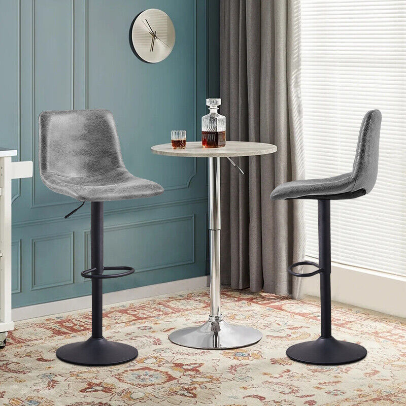 Set of 2 Barstools Gas lift Swivel Faux Leather Grey/Brown Bar Chairs New