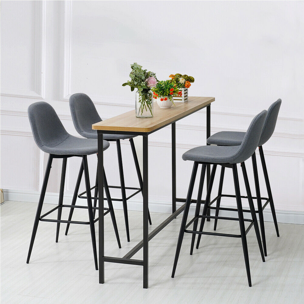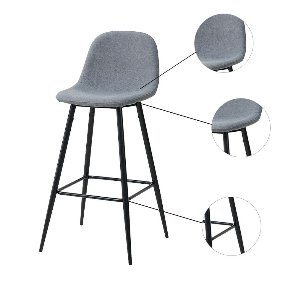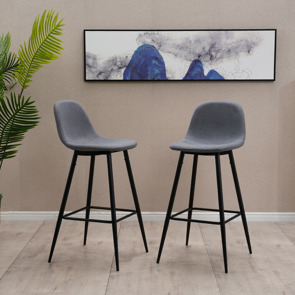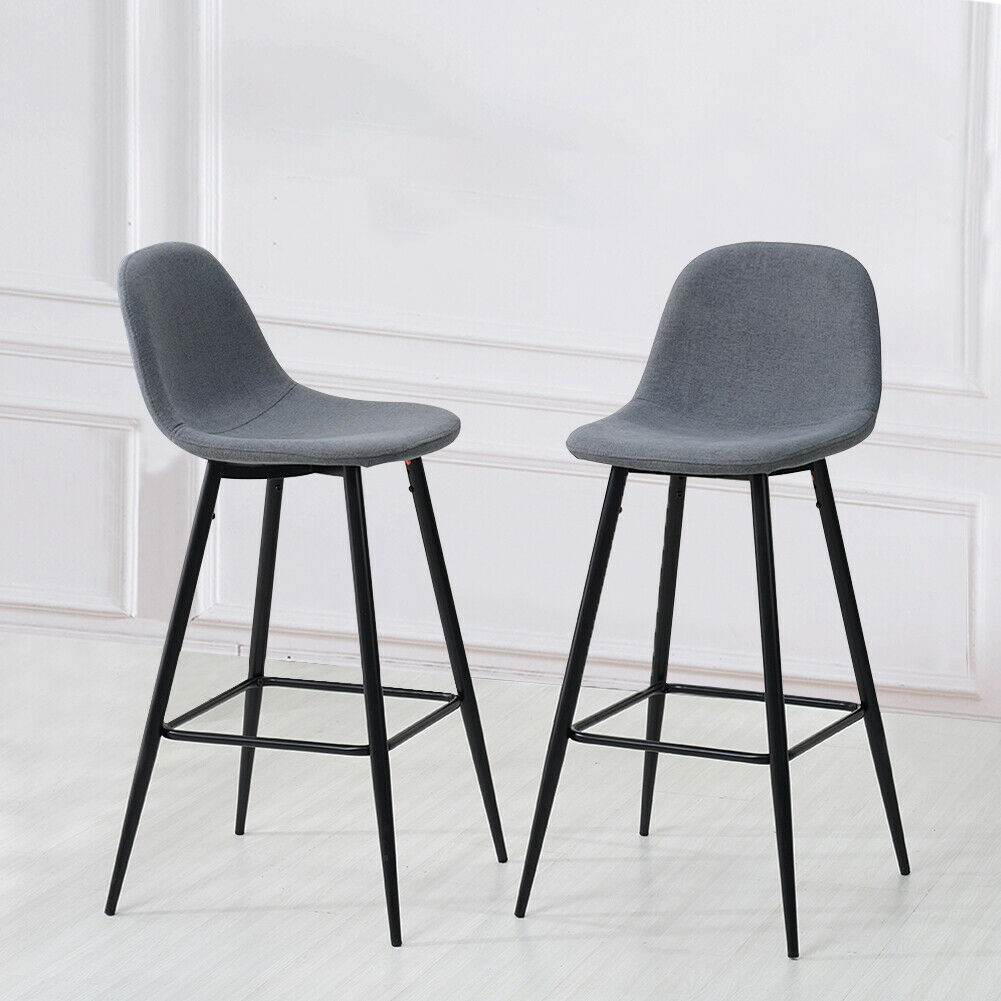 Set of 2 Barstools Grey Fabric Metal Legs Footrest Bar Stools Pub Salon Chairs