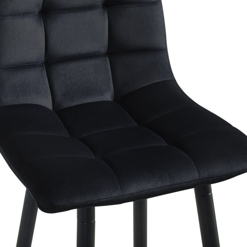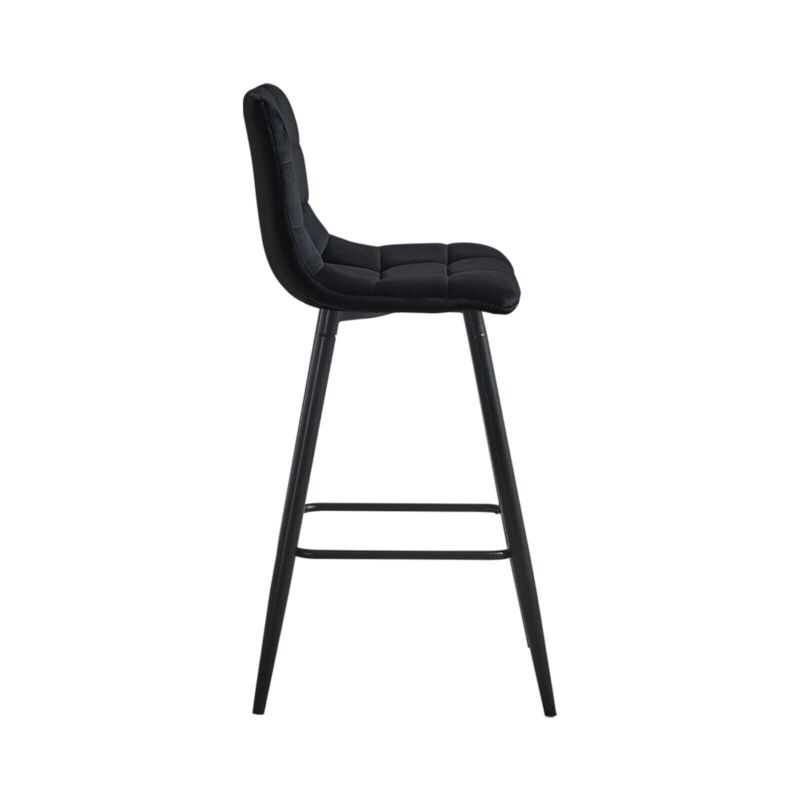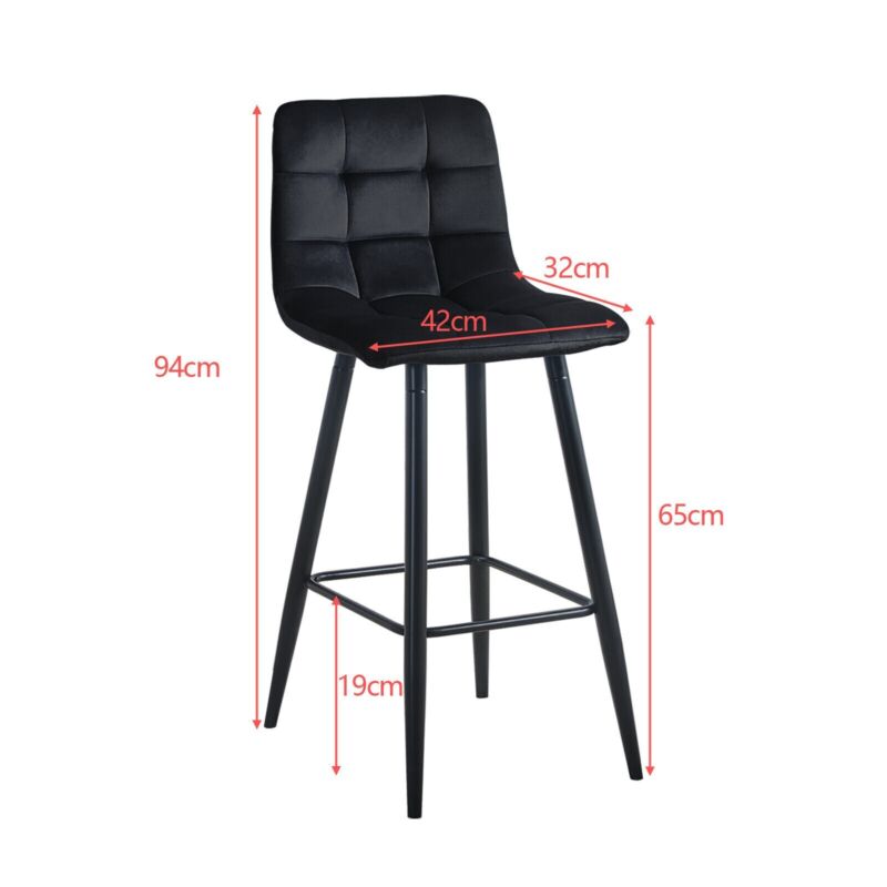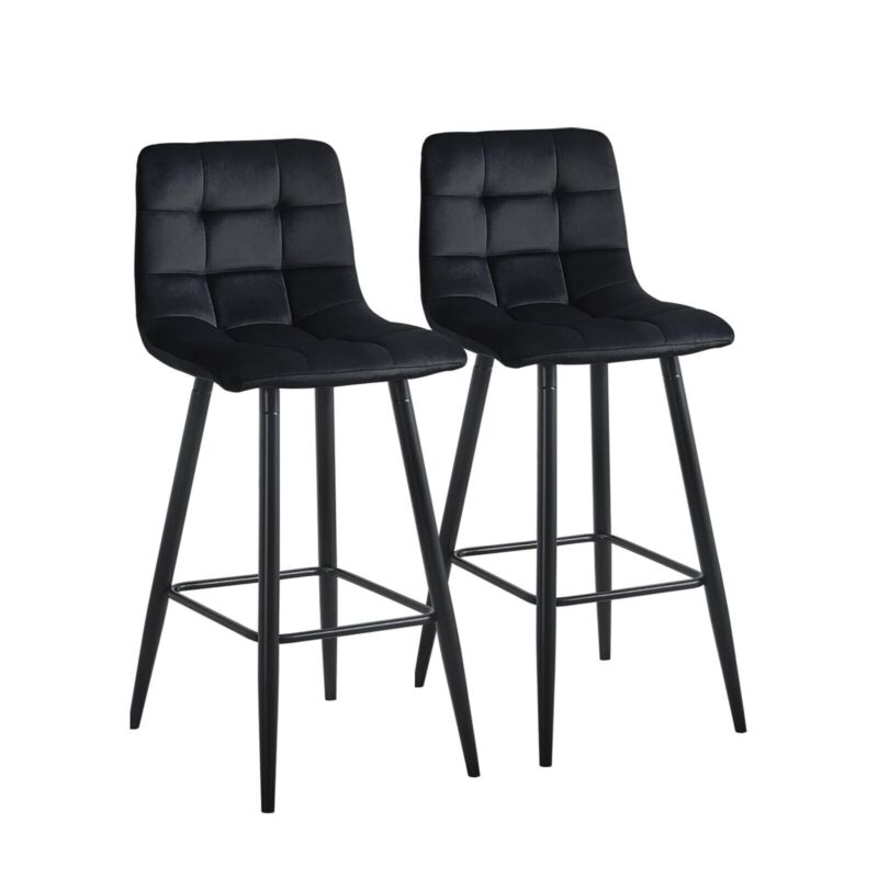 Set of 2 Black Velvet Bar Stools Breakfast Pub Chair Kitchen 65 cm Seat High