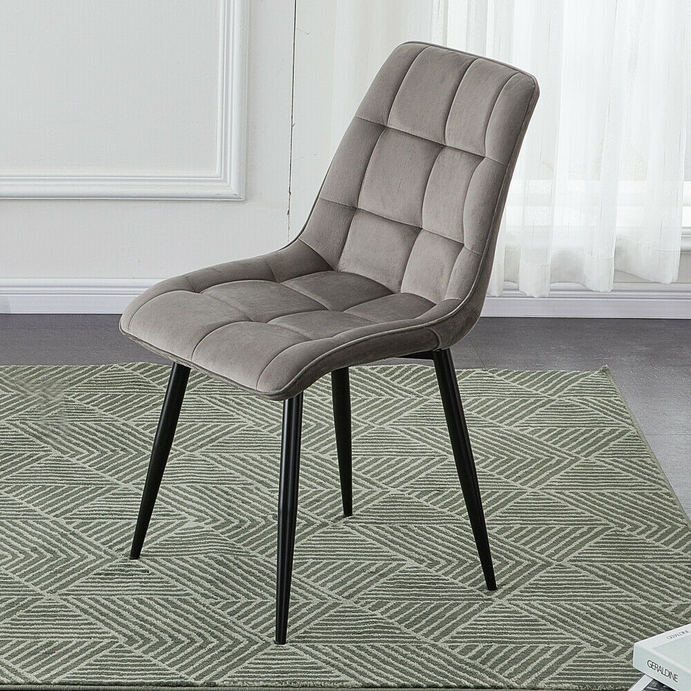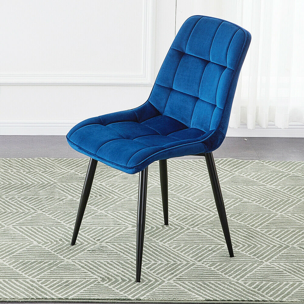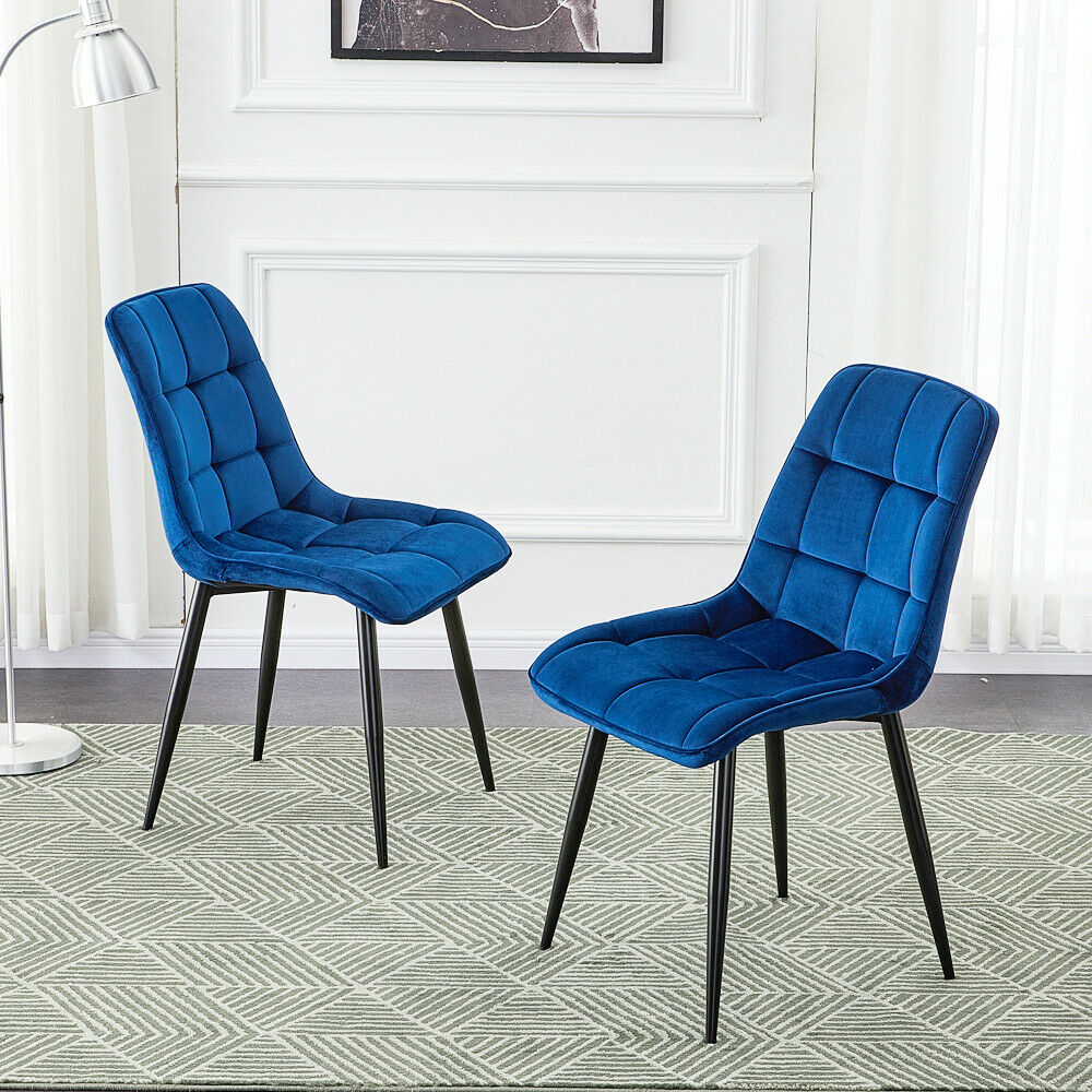 Set of 2 Blue Grey Velvet Dining Chairs Dinning Kitchen Room Metal Leg Padded