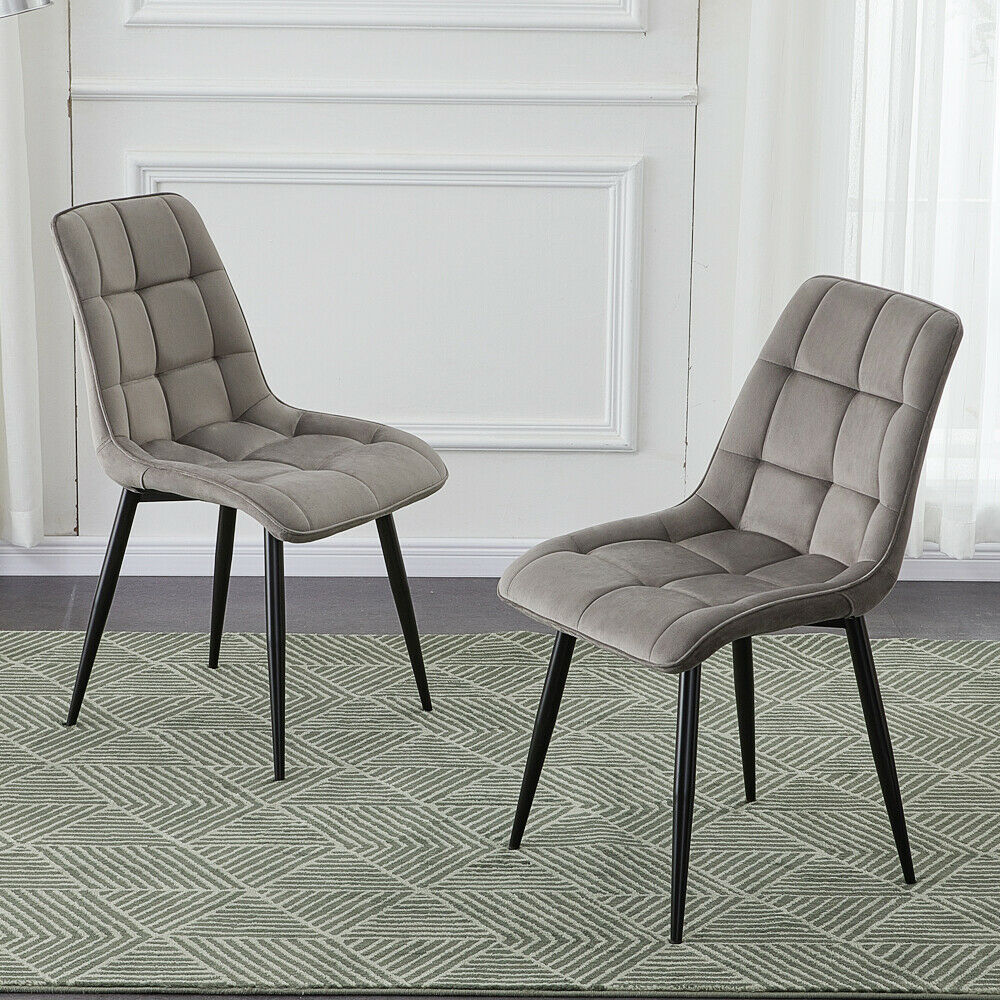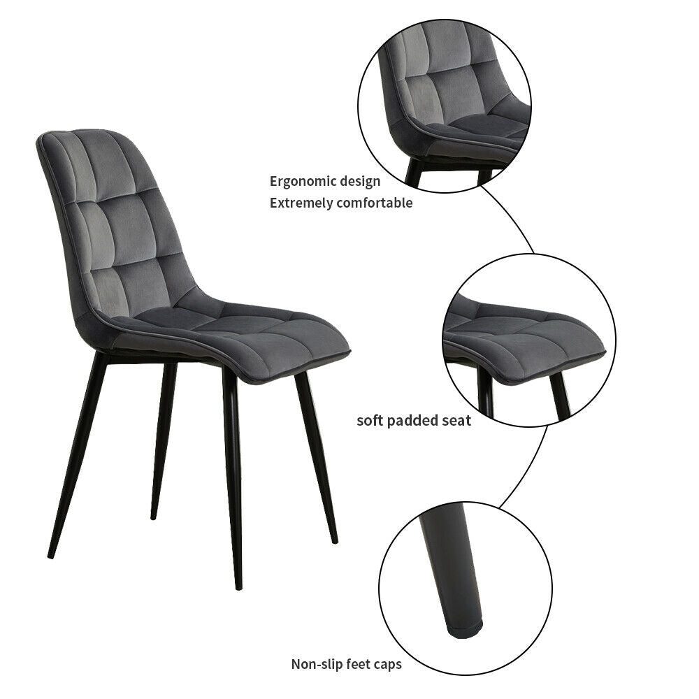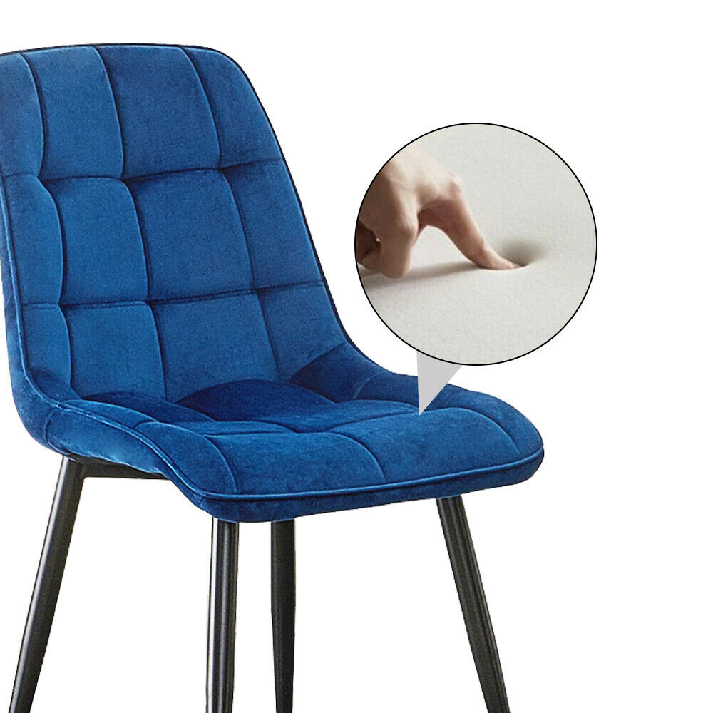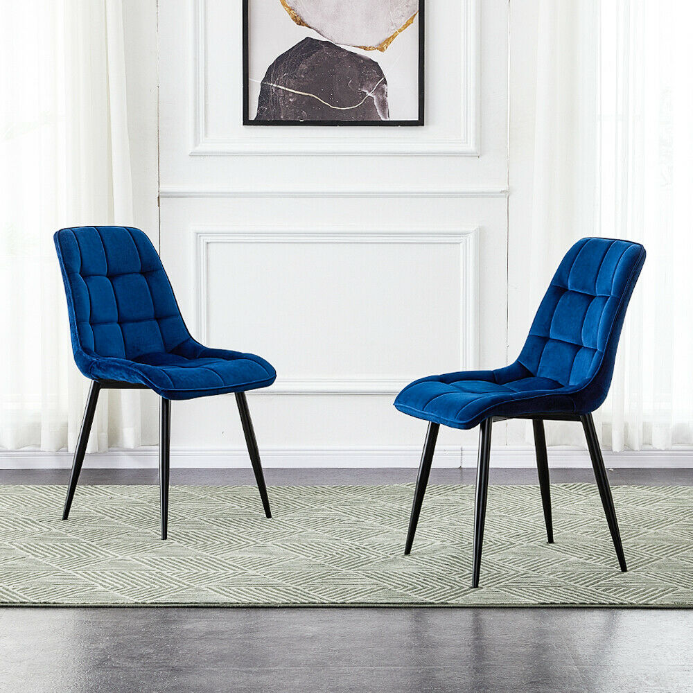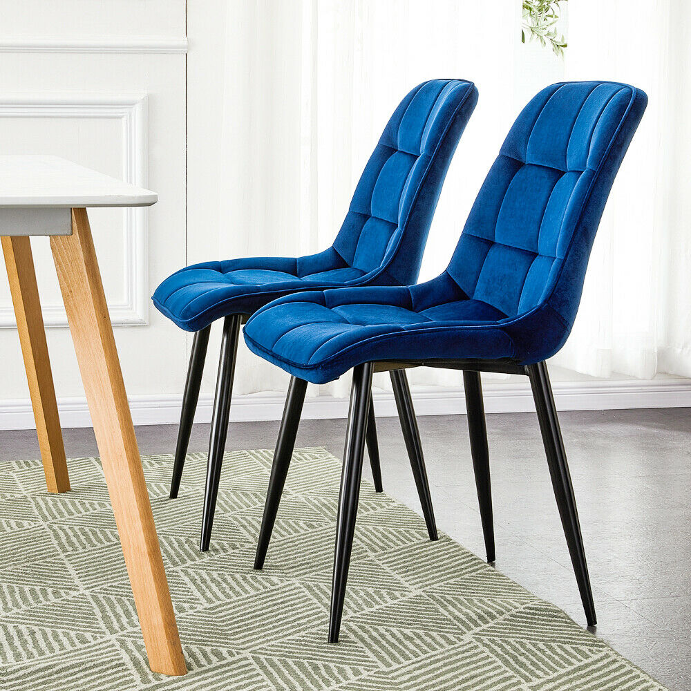 - Set of 2 Blue Grey Velvet Dining Chairs Dinning Kitchen Room Metal Leg Padded