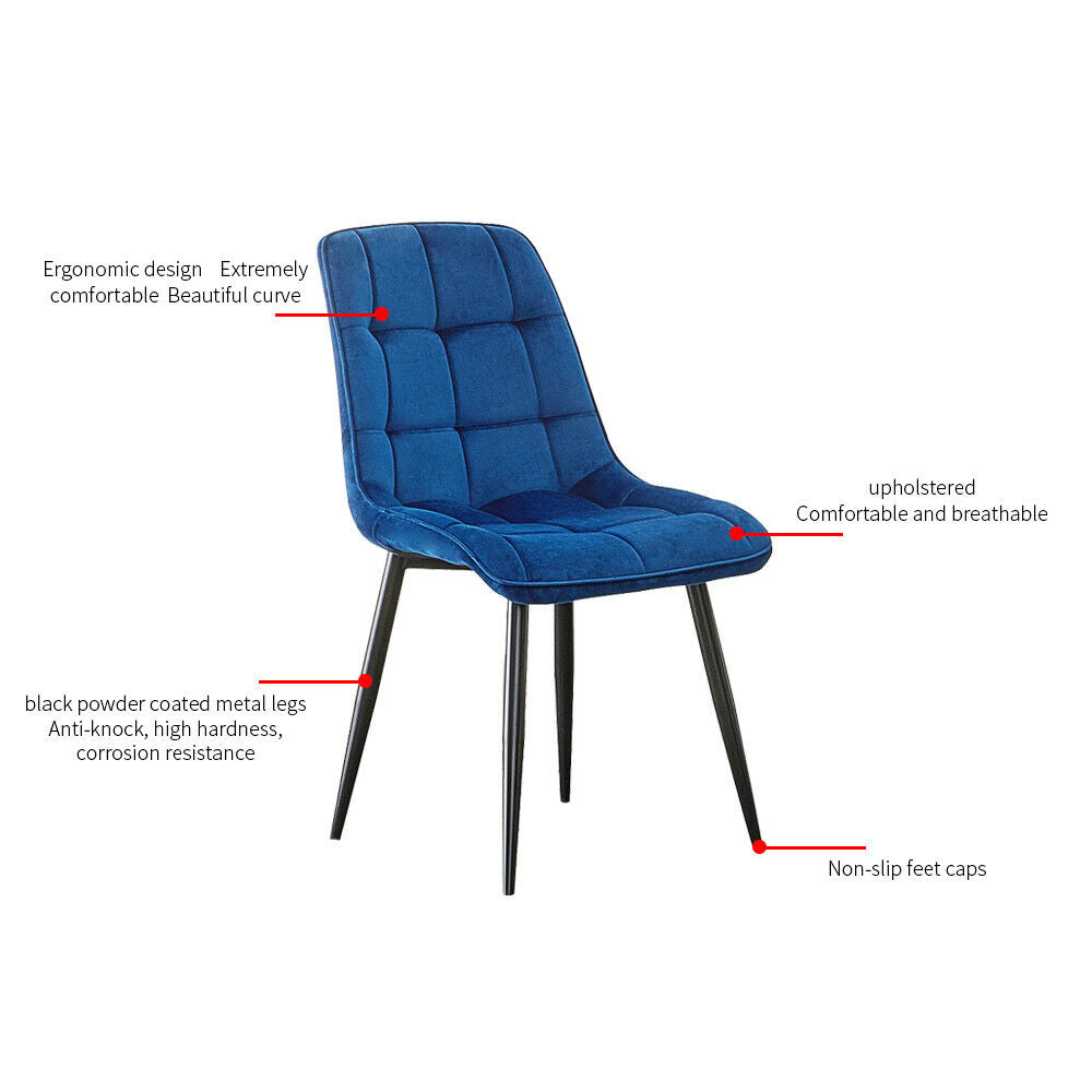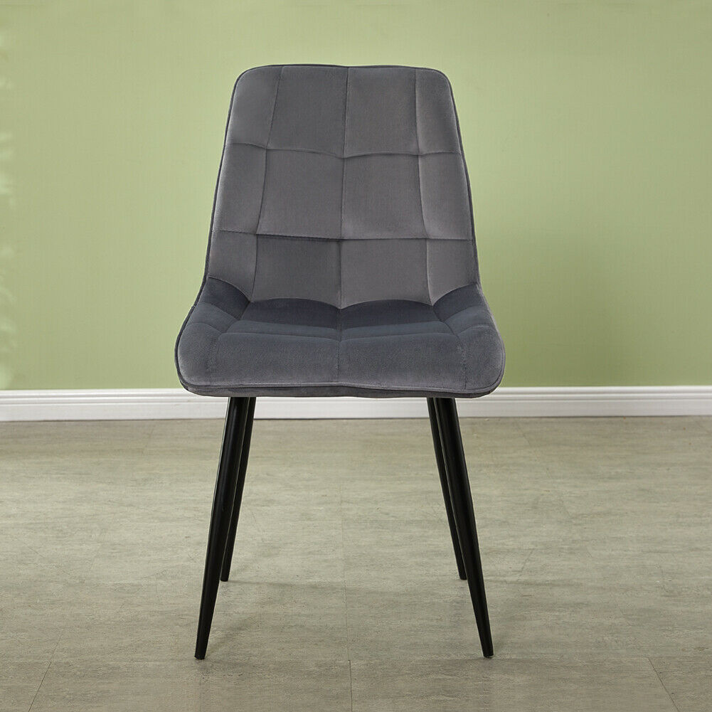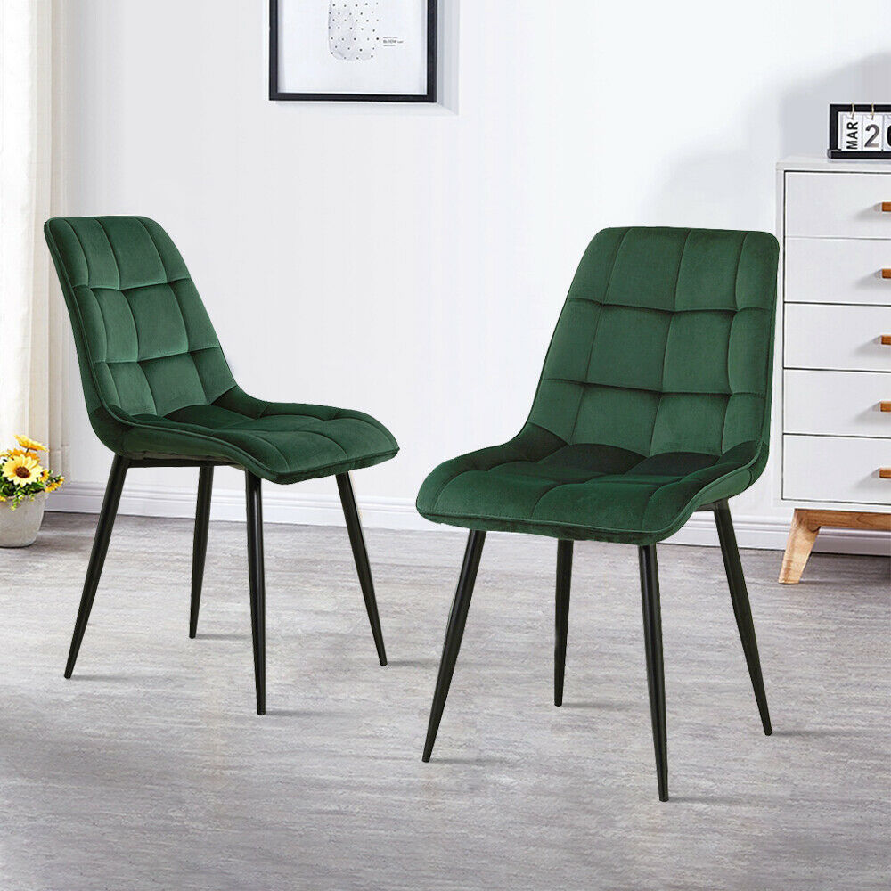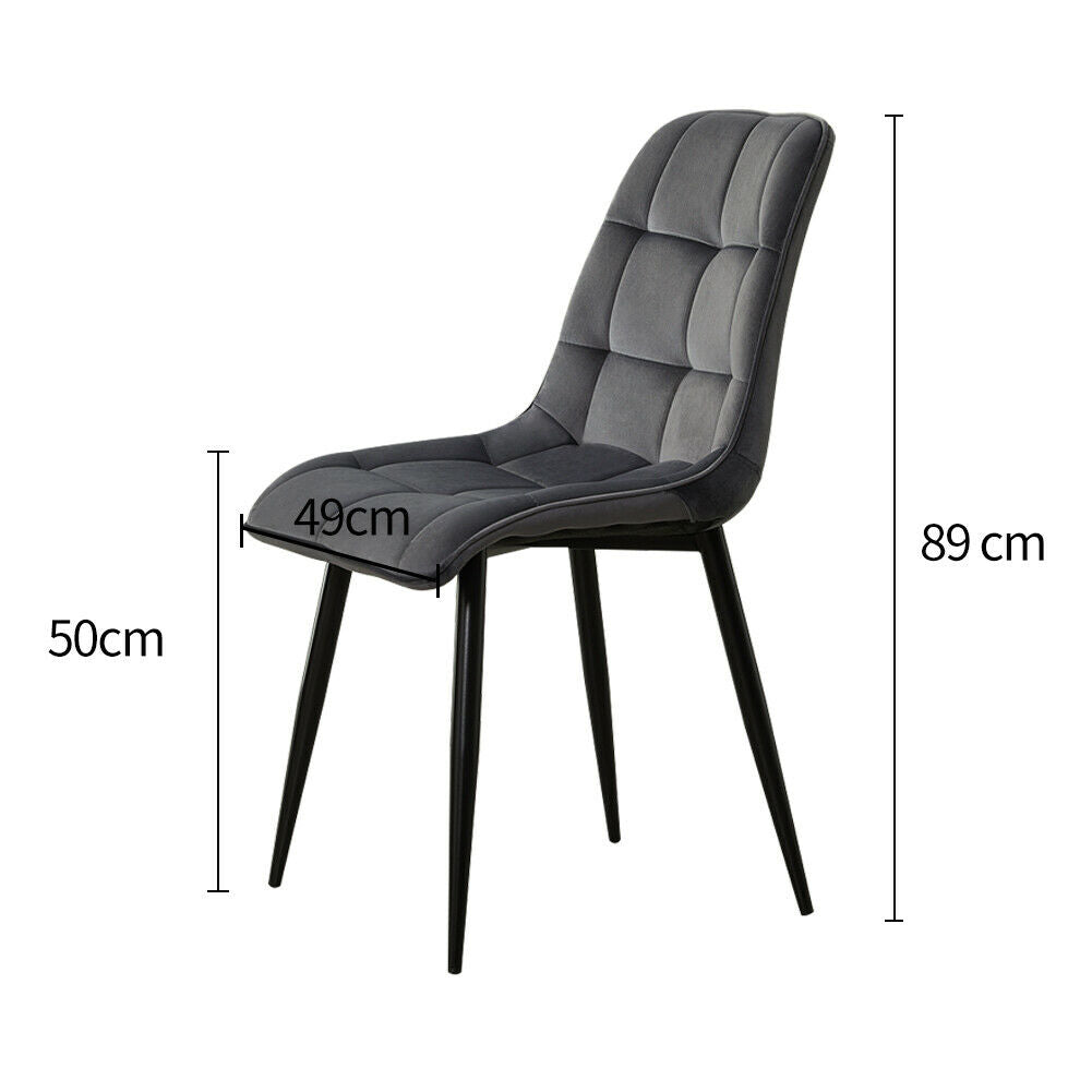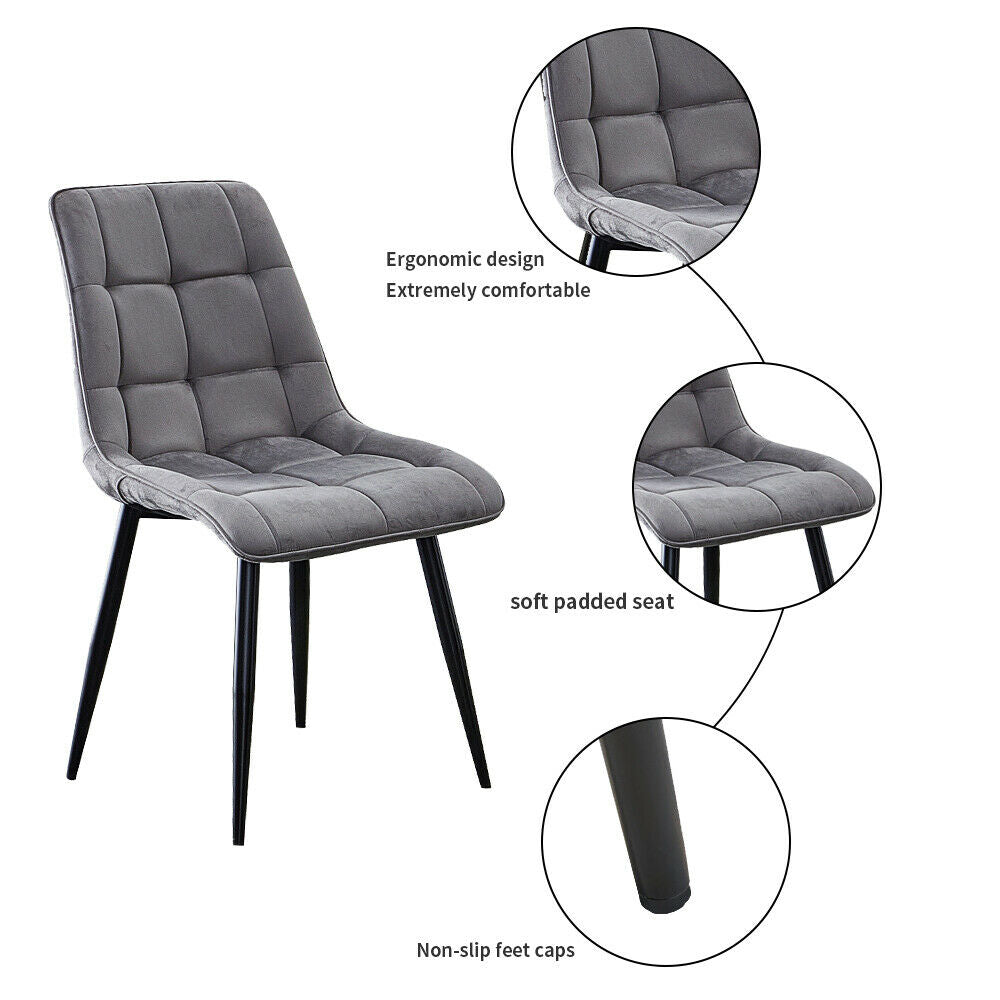 - Set of 2 Blue Grey Velvet Dining Chairs Dinning Kitchen Room Metal Leg Padded