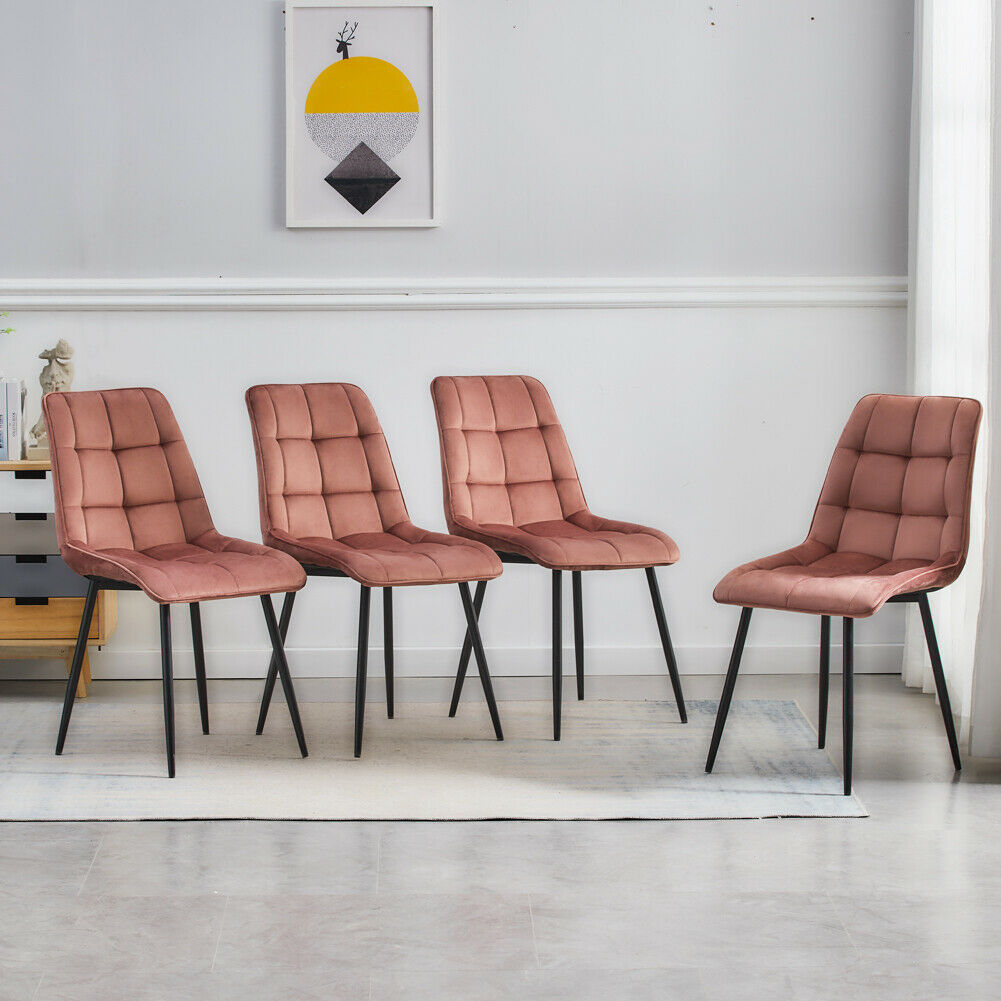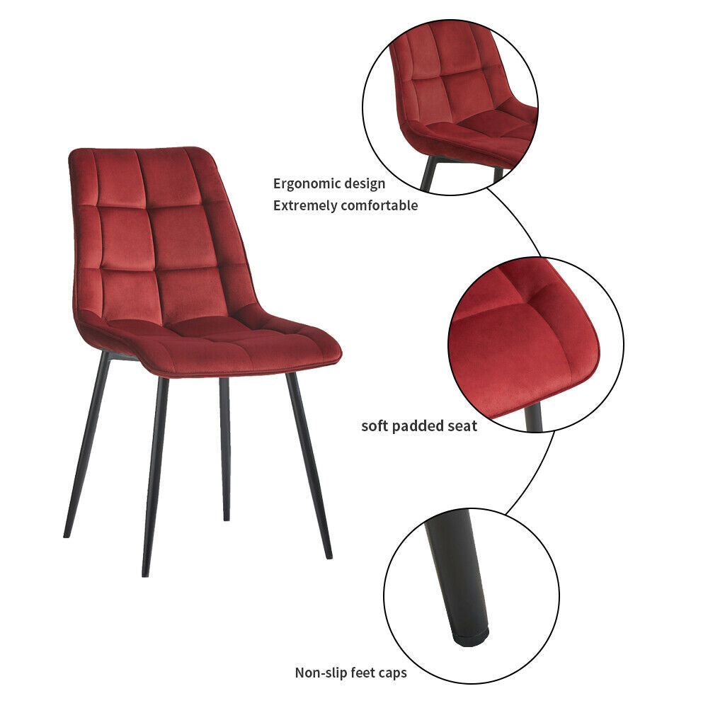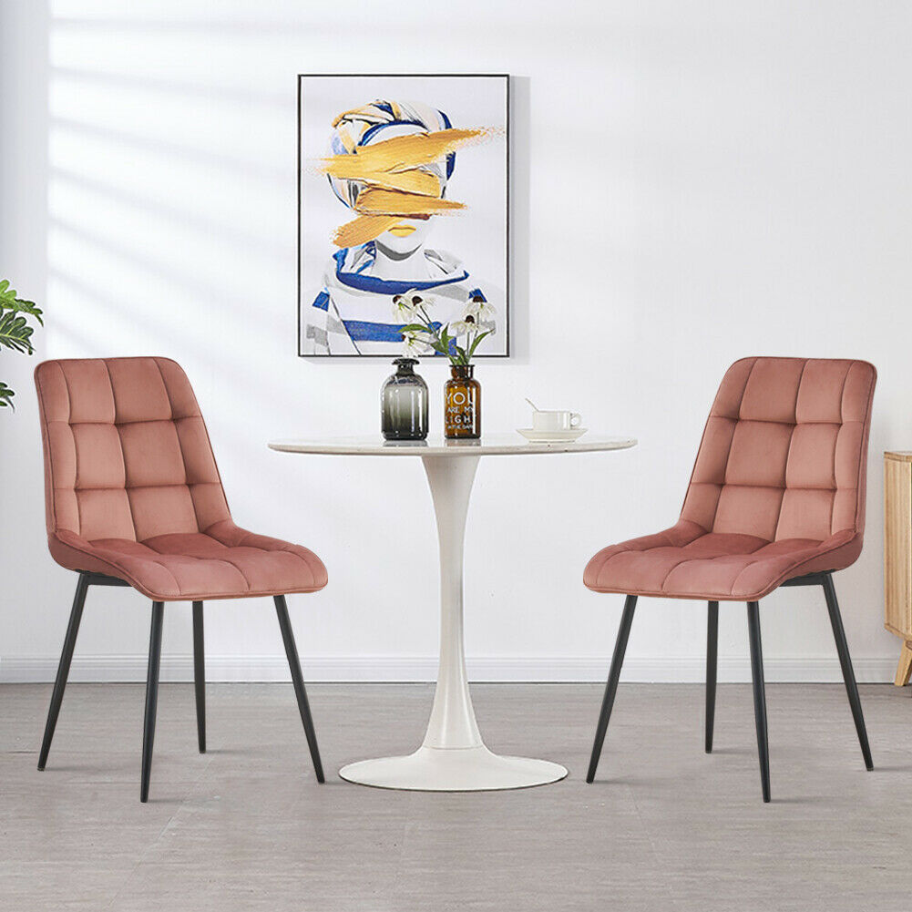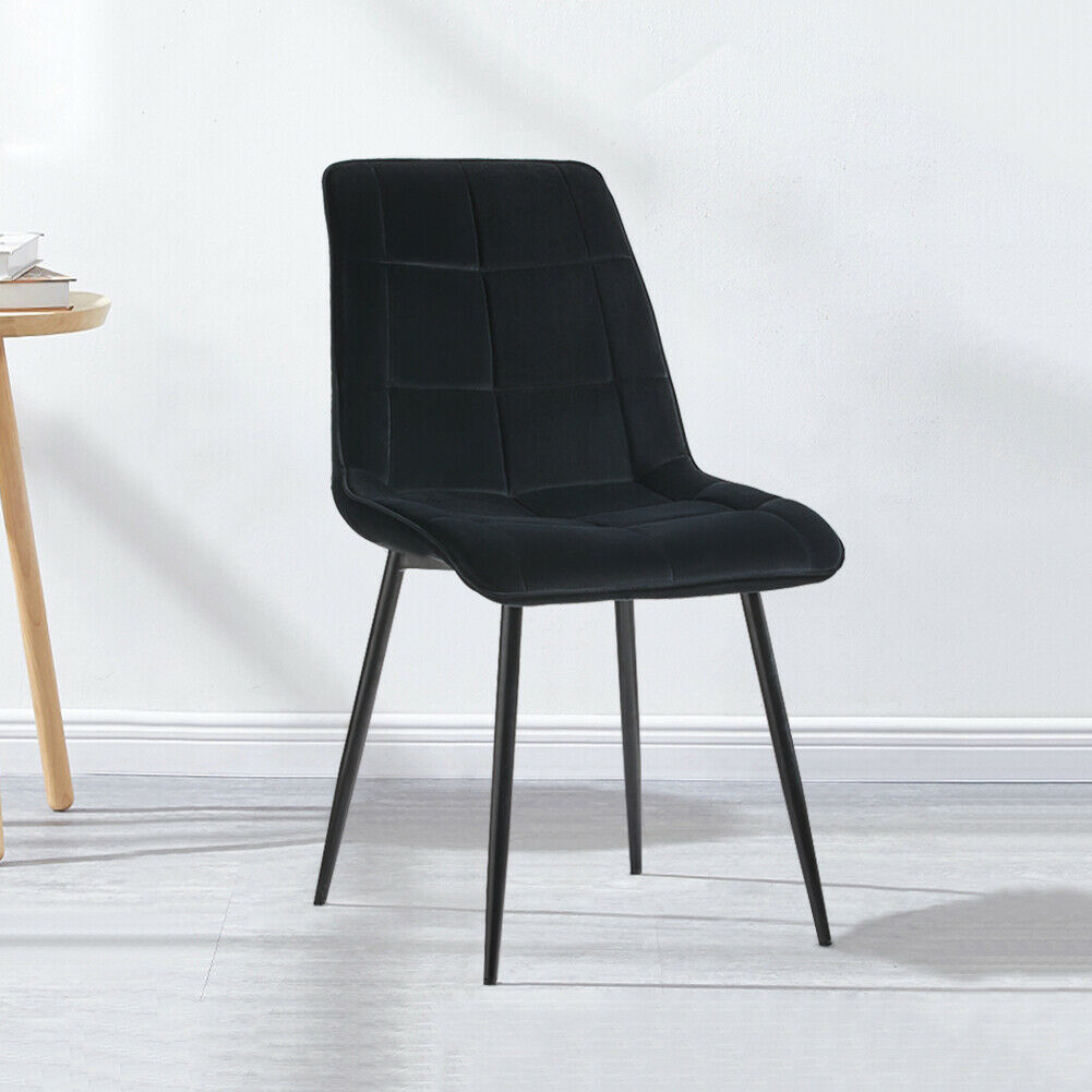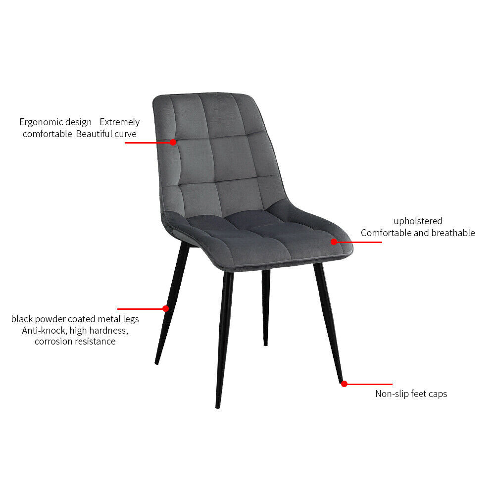 - Set of 2 Blue Grey Velvet Dining Chairs Dinning Kitchen Room Metal Leg Padded