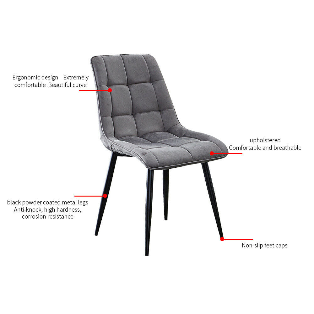 Set of 2 Blue Grey Velvet Dining Chairs Dinning Kitchen Room Metal Leg Padded