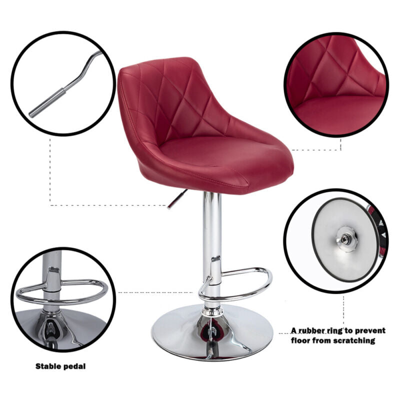 Set of 2 Breakfast Bar Stools W/ Footrest & Back Kitchen Gas Lift Swivel Chairs