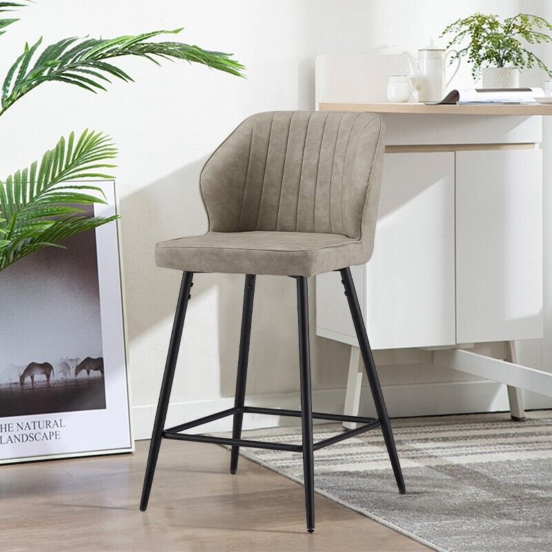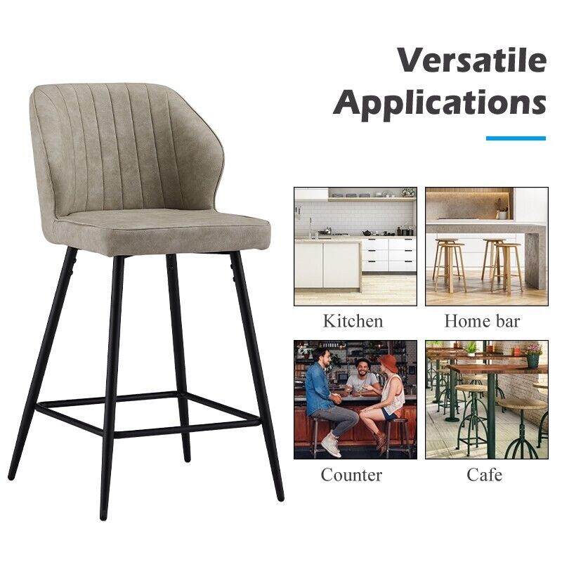 Set of 2 Counter Stools Dining Chairs Barstools Faux Leather Upholstered Seat