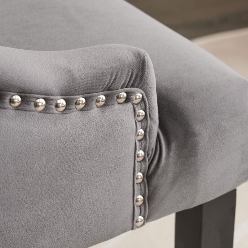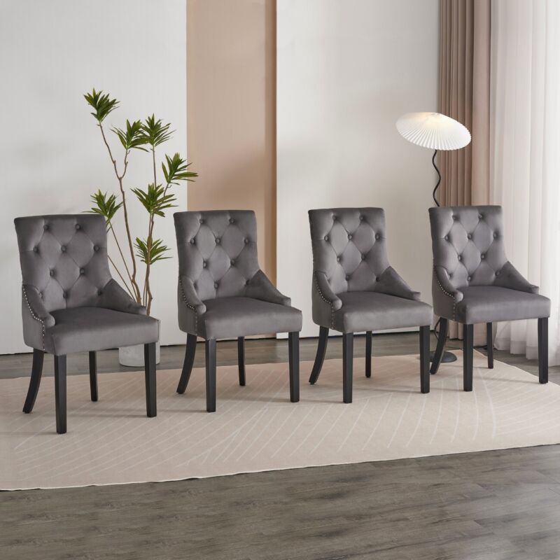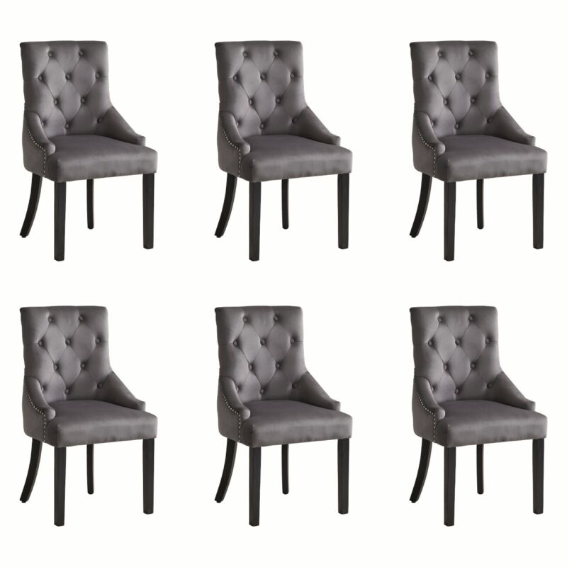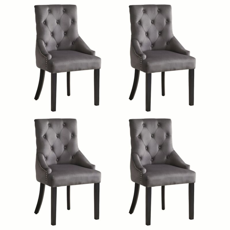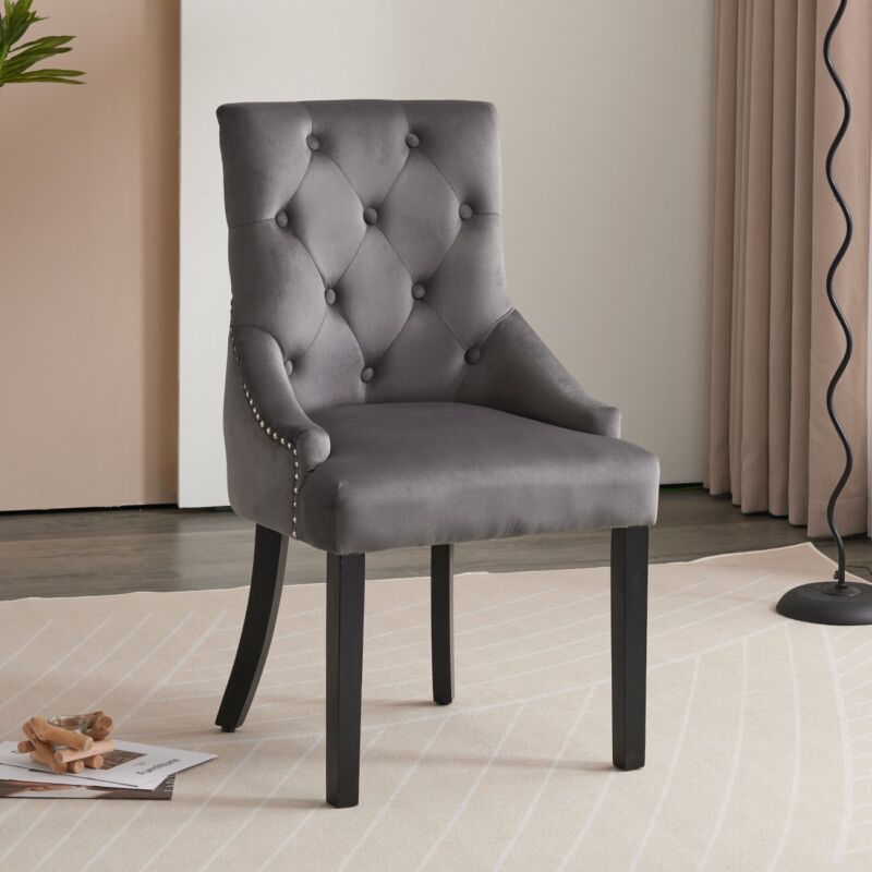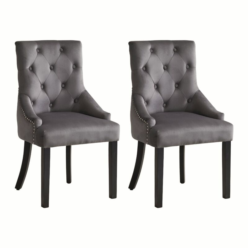 Set of 2 Dark Grey Velvet Dining Chairs Tufted High Back for Dining Room Kitchen