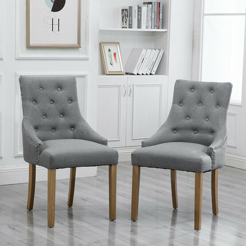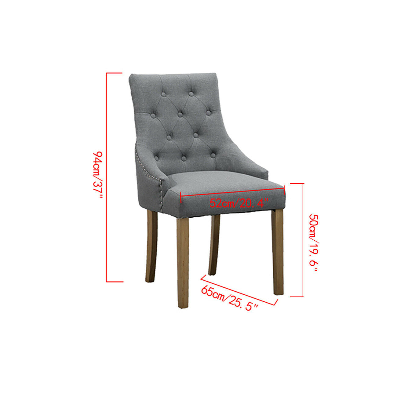 set of 2 Dining Chair Accent Chair Button Tufted Fabric Upholstered Grey Kitchen