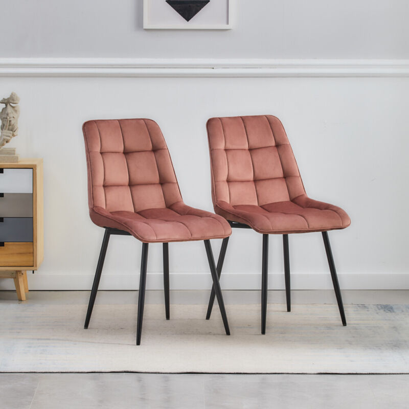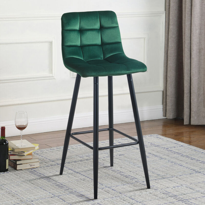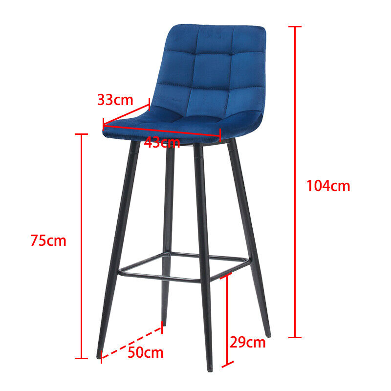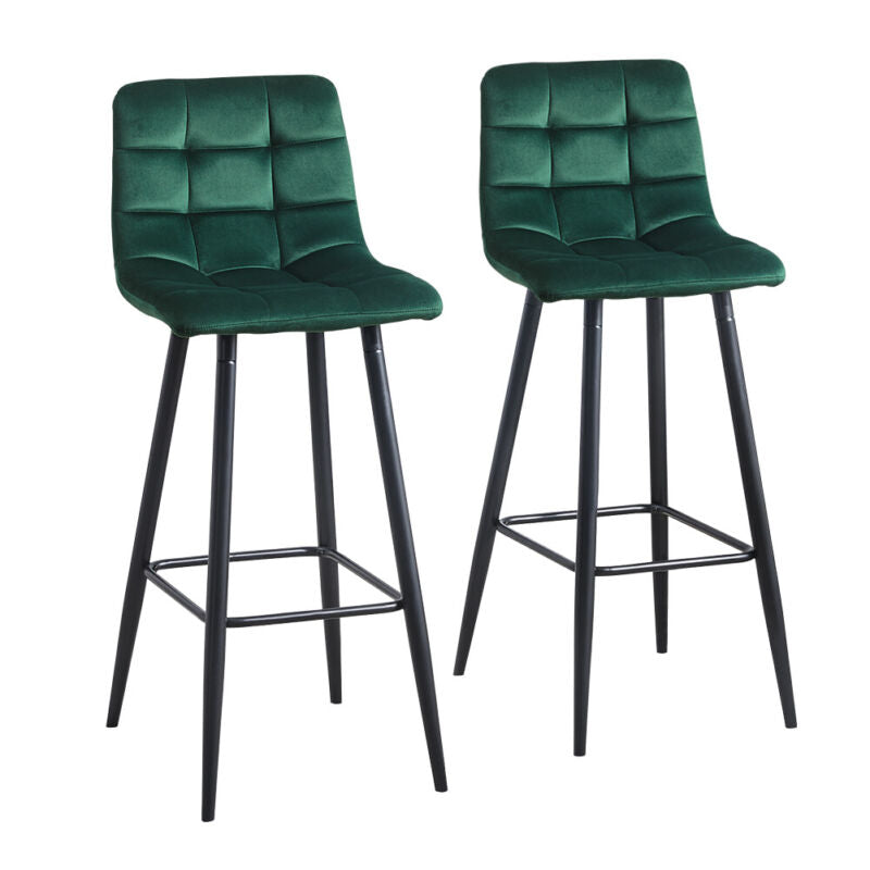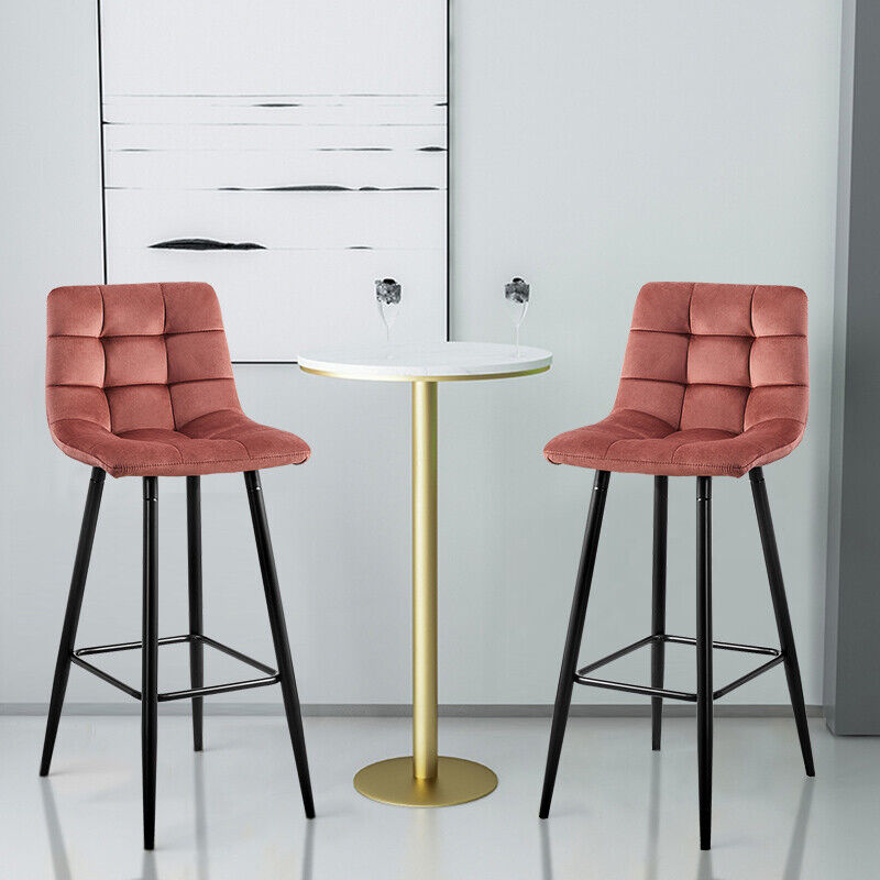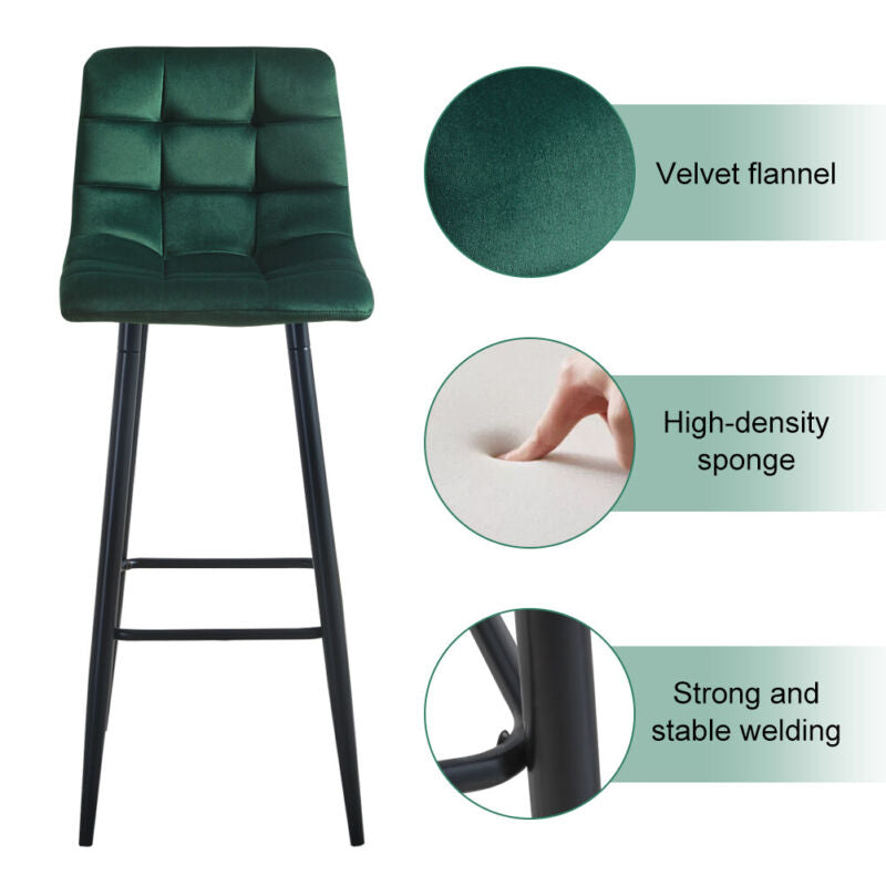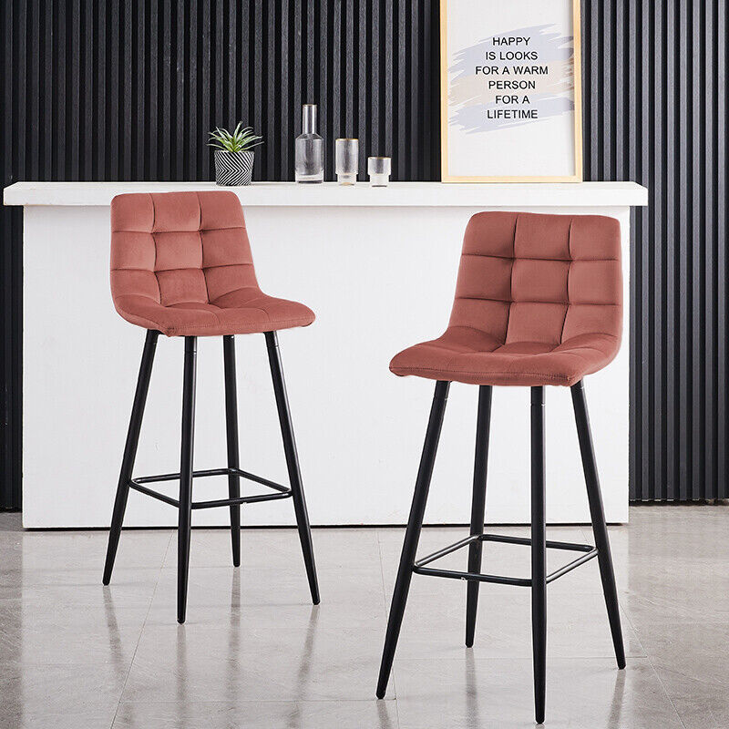 Set of 2 Dining Chairs Bar Stools Velvet Upholstered Metal Legs Barstool Chair