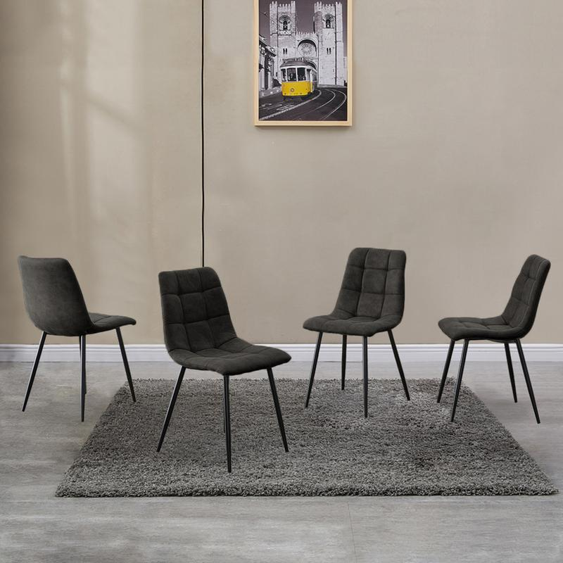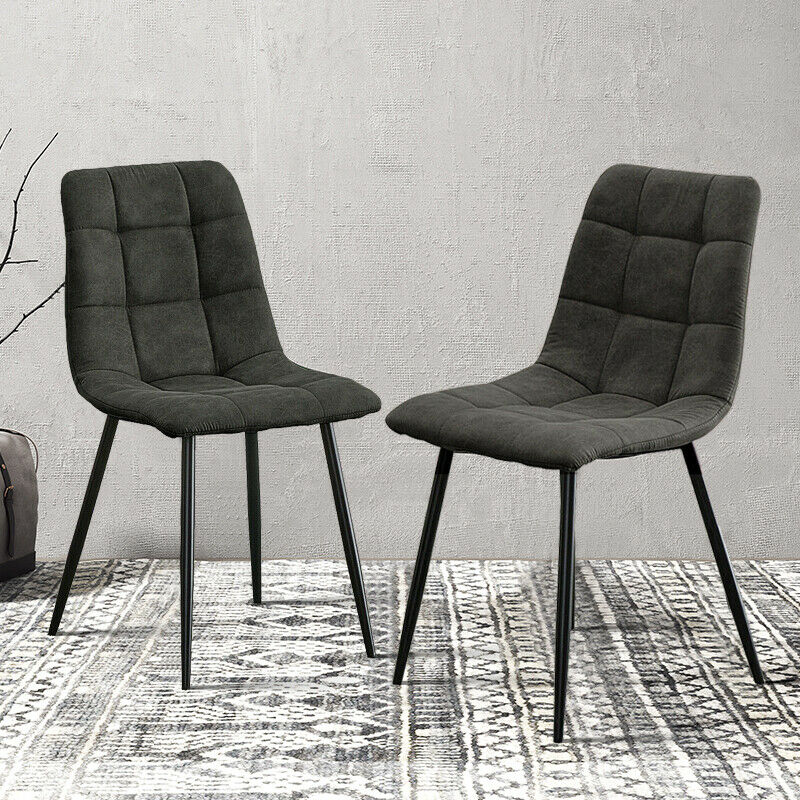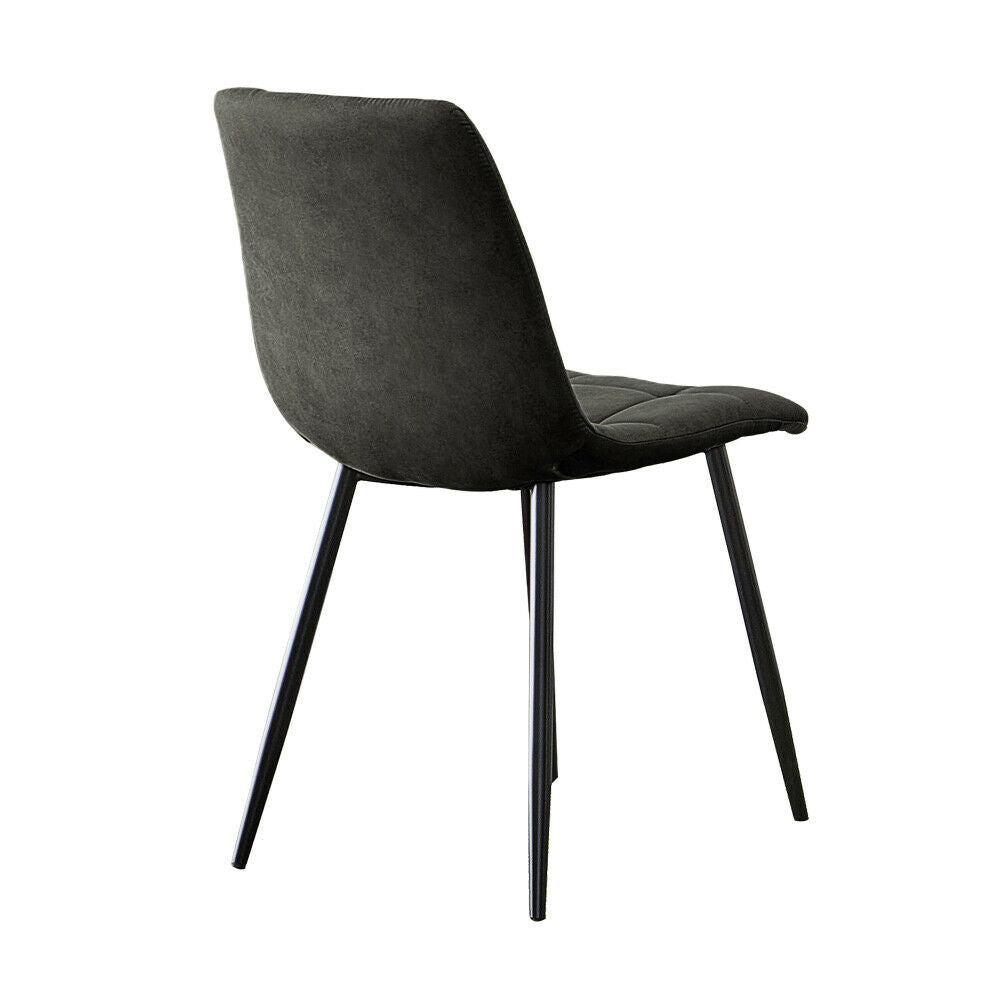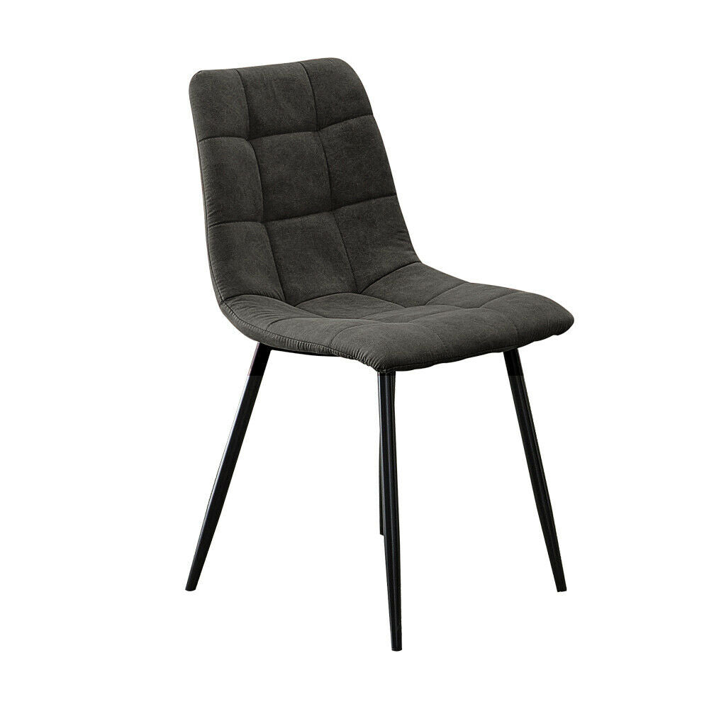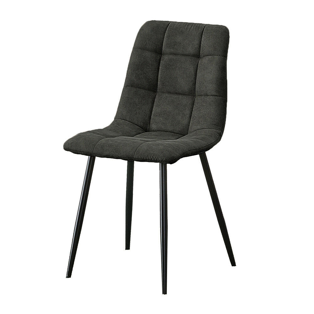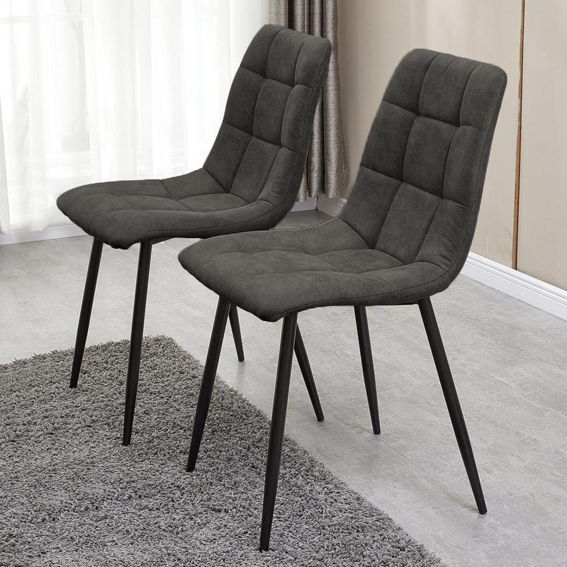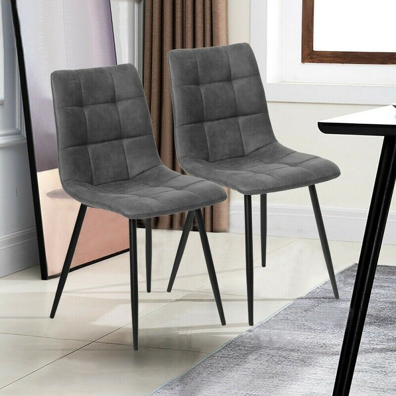 Set of 2 Dining Chairs Faux Leather Cushion Metal Legs Kitchen Deep Grey Modern