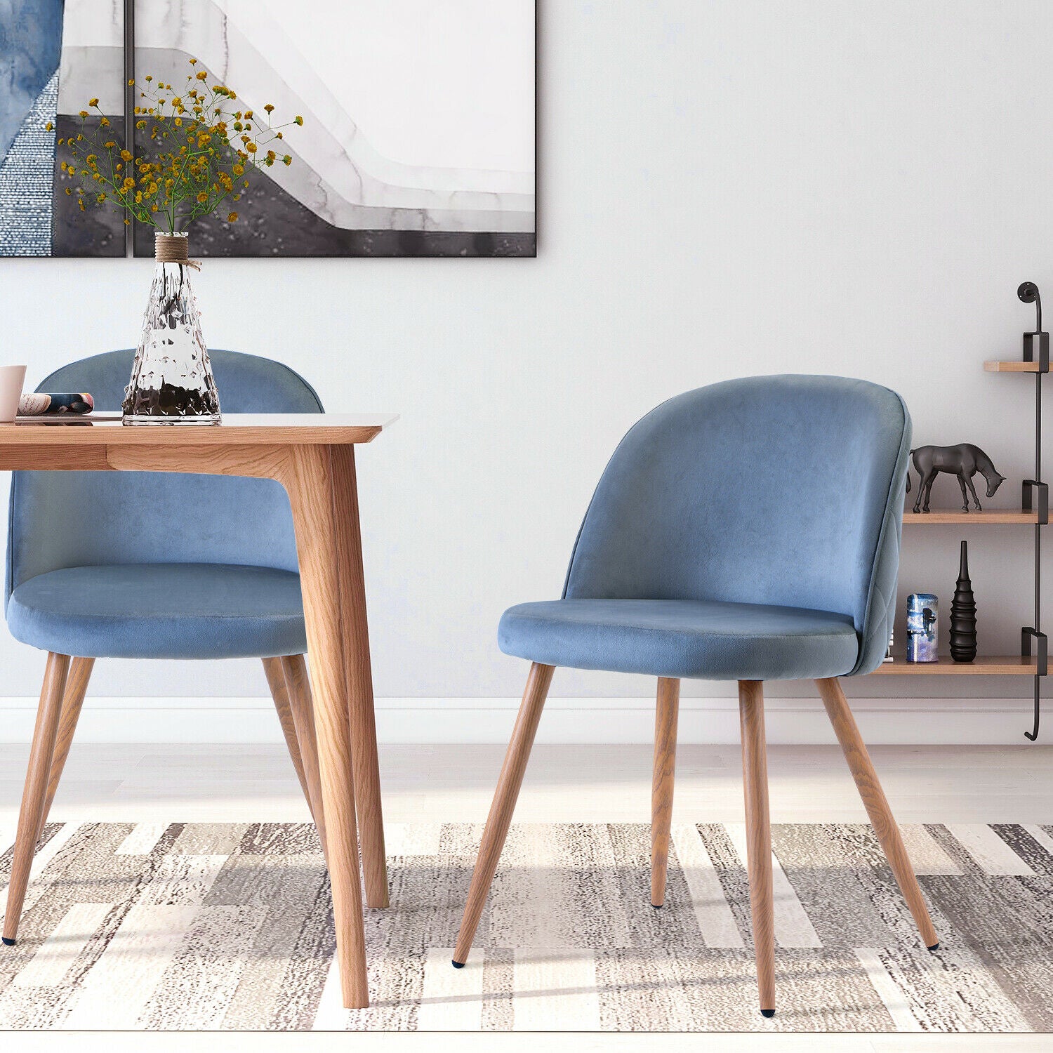 Set of 2 Dining Chairs Modern Upholstered Home Office Chair with Solid Wood Legs