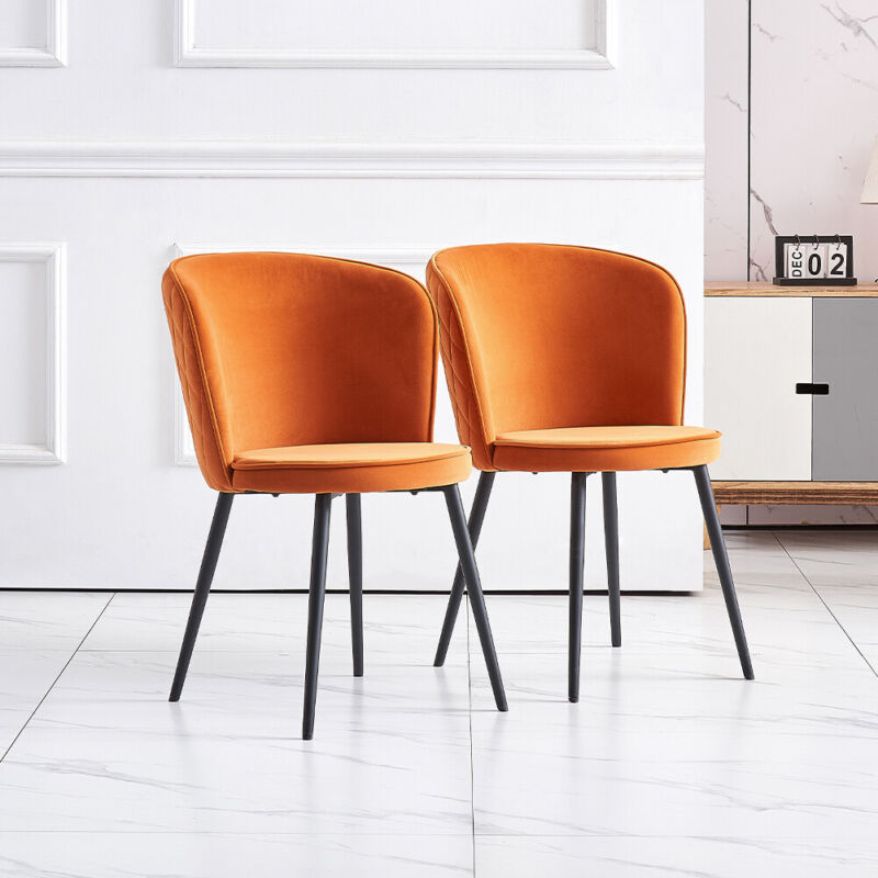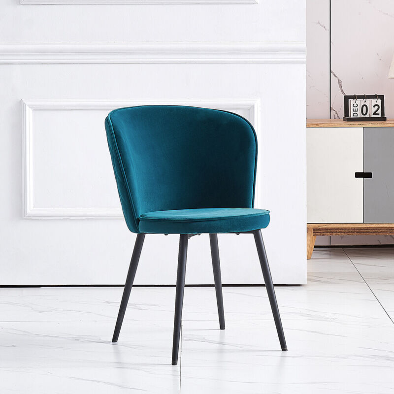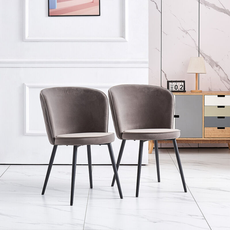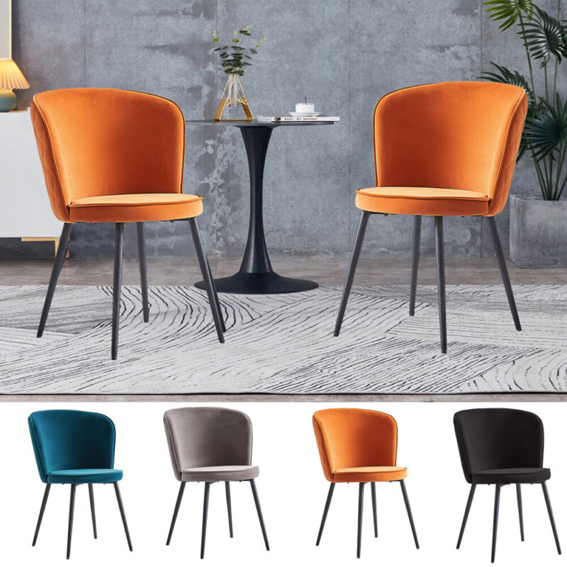 Set of 2 Dining Chairs Velvet Padded Seat Metal Legs Kitchen Chair Home Office