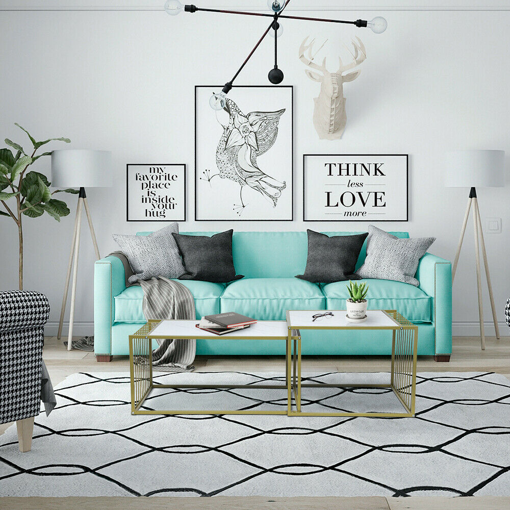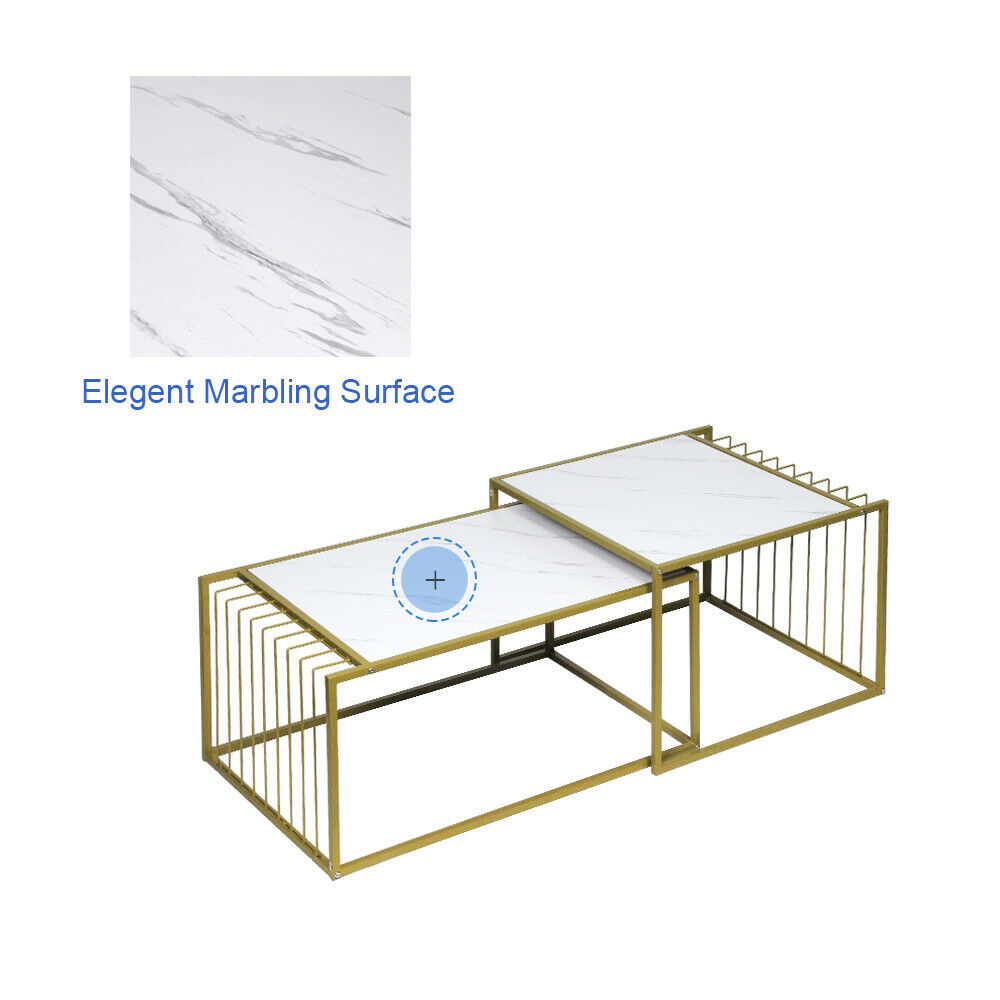 Set of 2 Extentable Marble Vein Coffee Table Nested Table Metal Leg Living Room