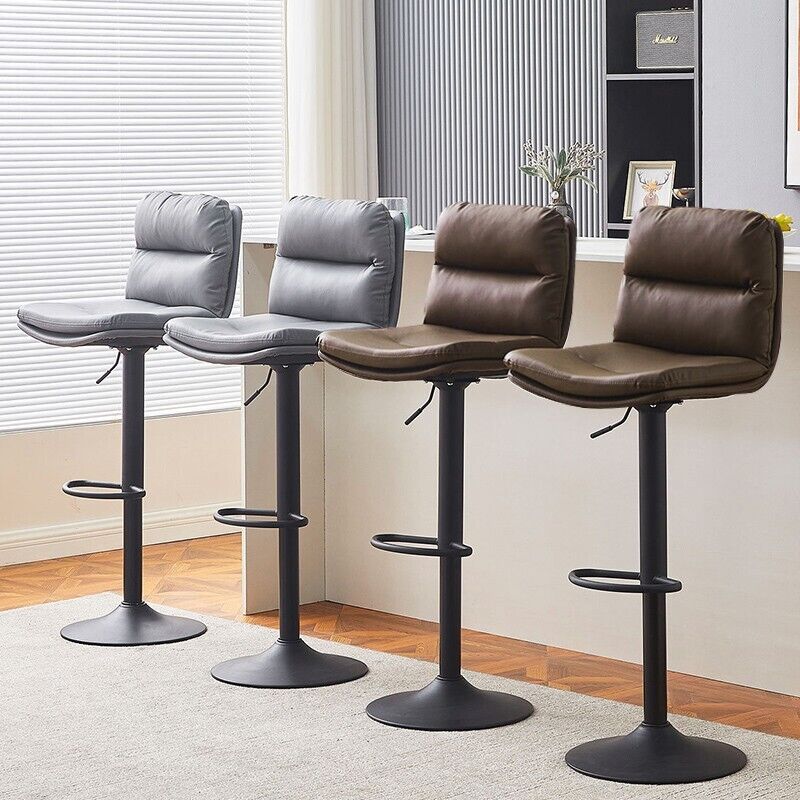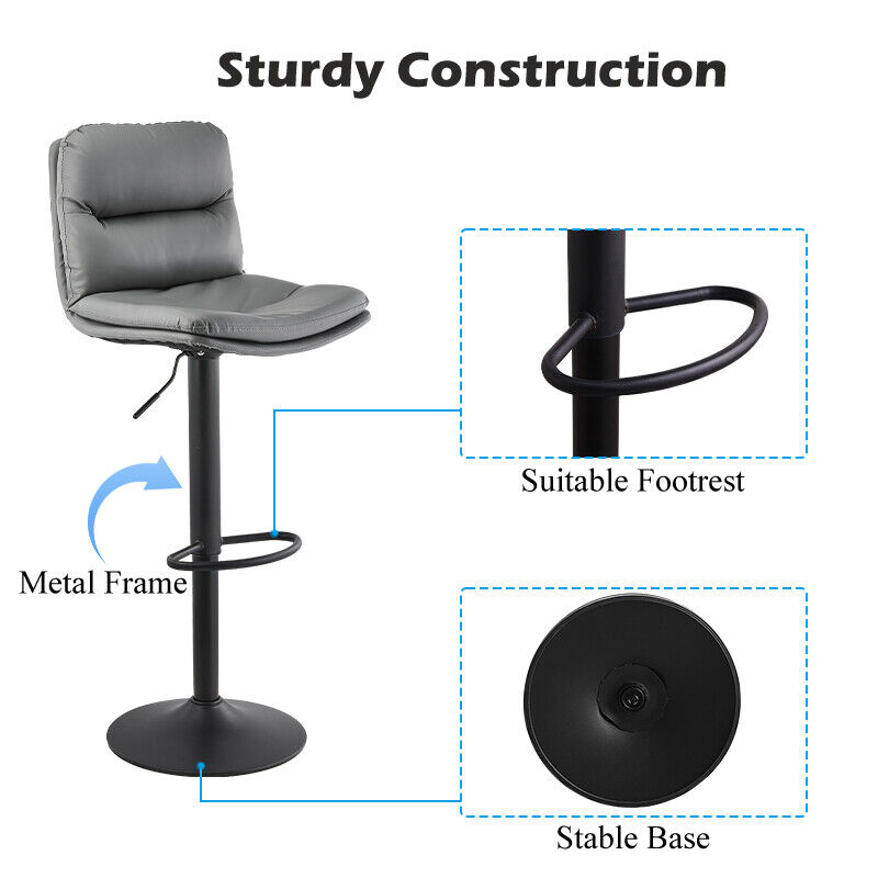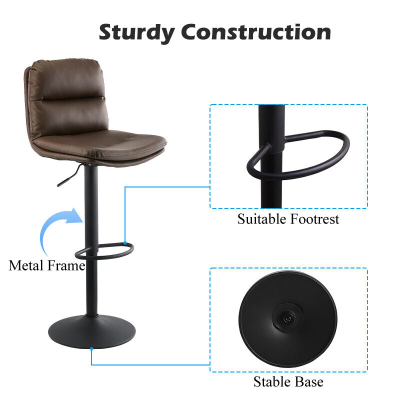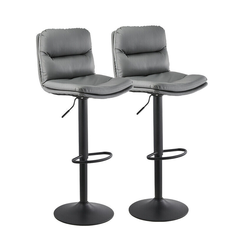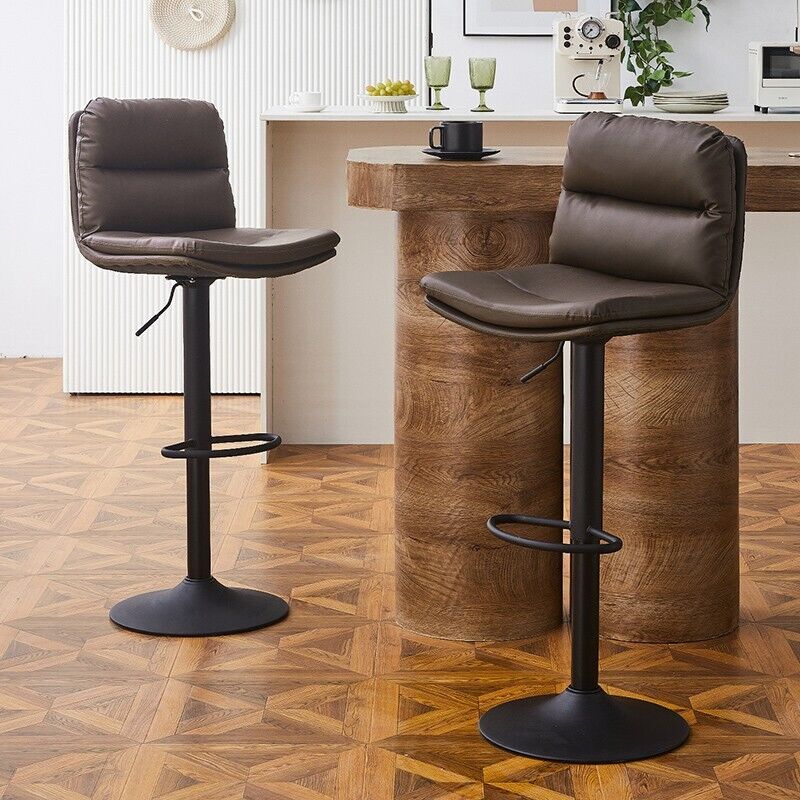 Set of 2 Faux Leather Bar Stools Breakfast Stools Brown Grey Gas Lift Swivel