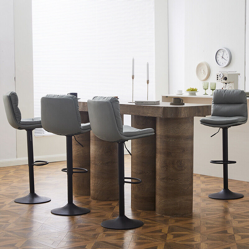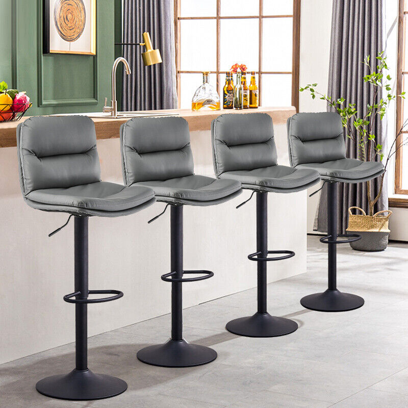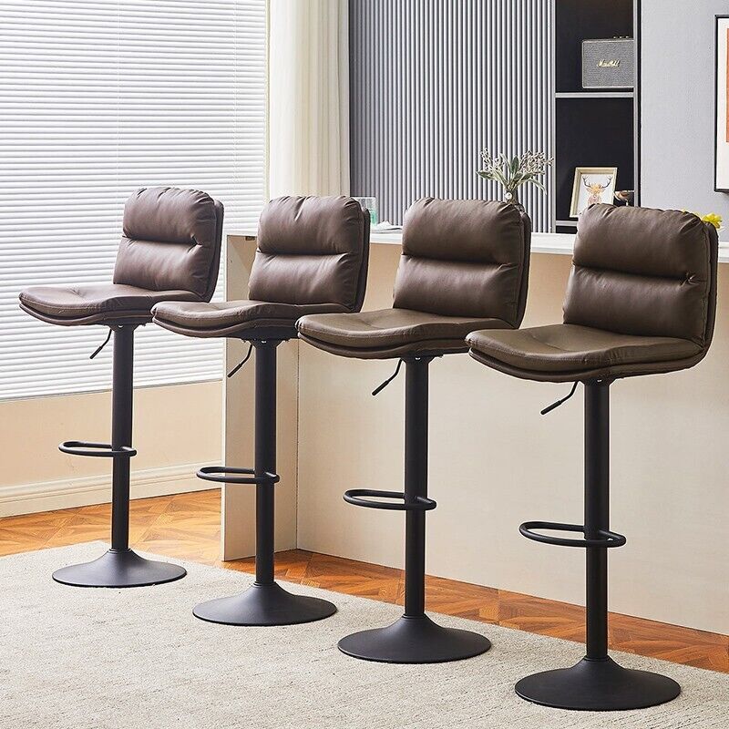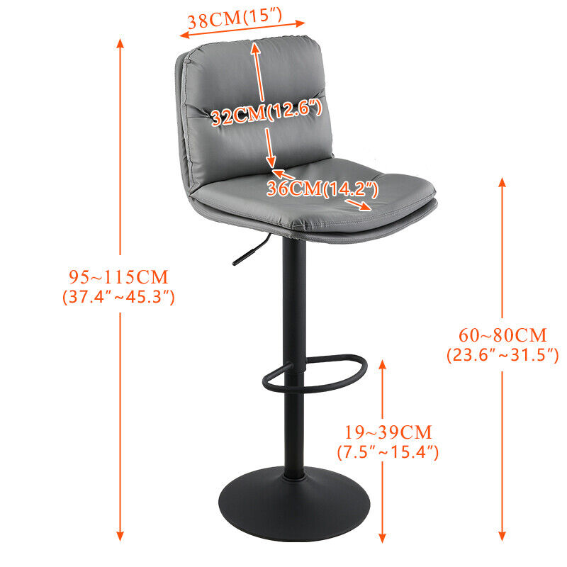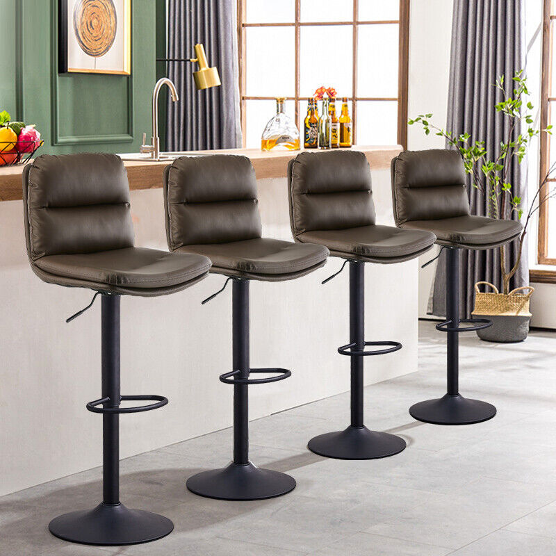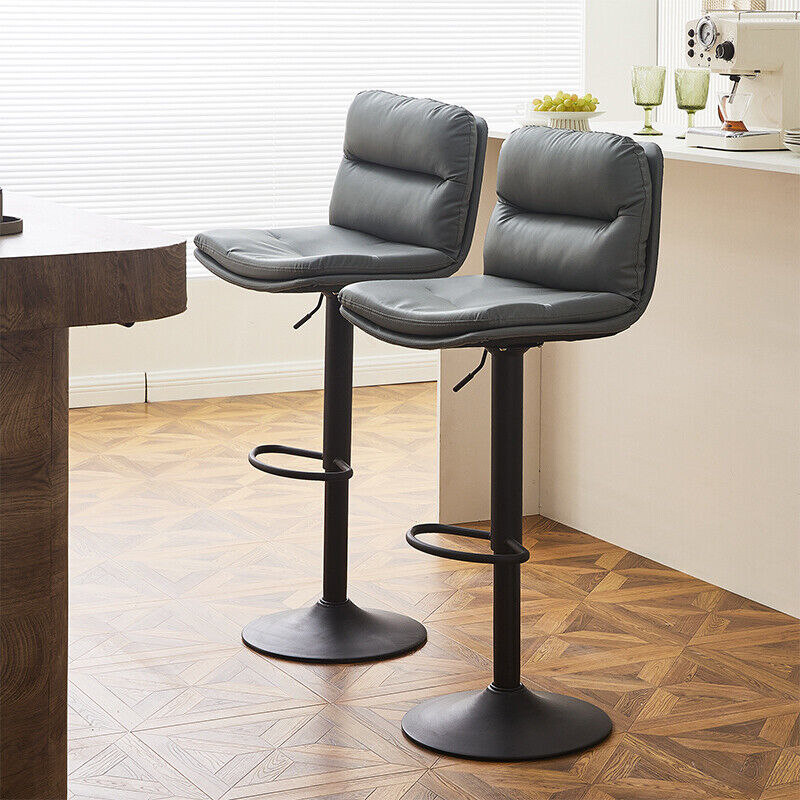 Set of 2 Faux Leather Bar Stools Breakfast Stools Brown Grey Gas Lift Swivel