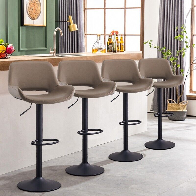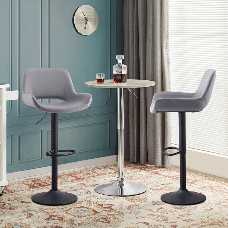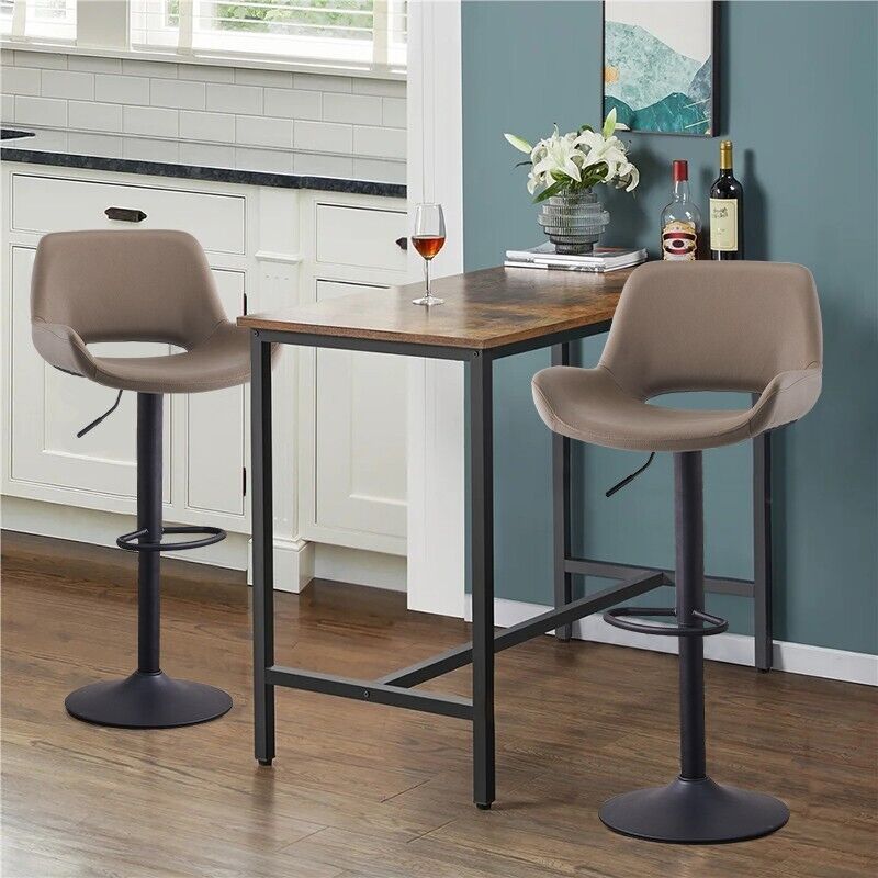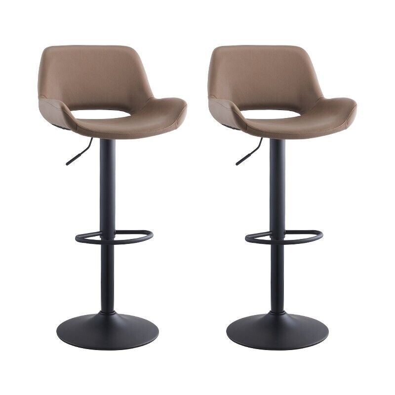 Set of 2 Faux Leather Bar Stools Swivel Gas Lift Foot Rest Pub Chair Brown Grey
